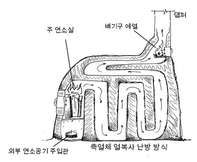 가) 돌이나 벽돌, 흙과 같은 재료로 만든 축열체에 열을 저장했다 열복사가 일어나게 하는 축열 복사 방식