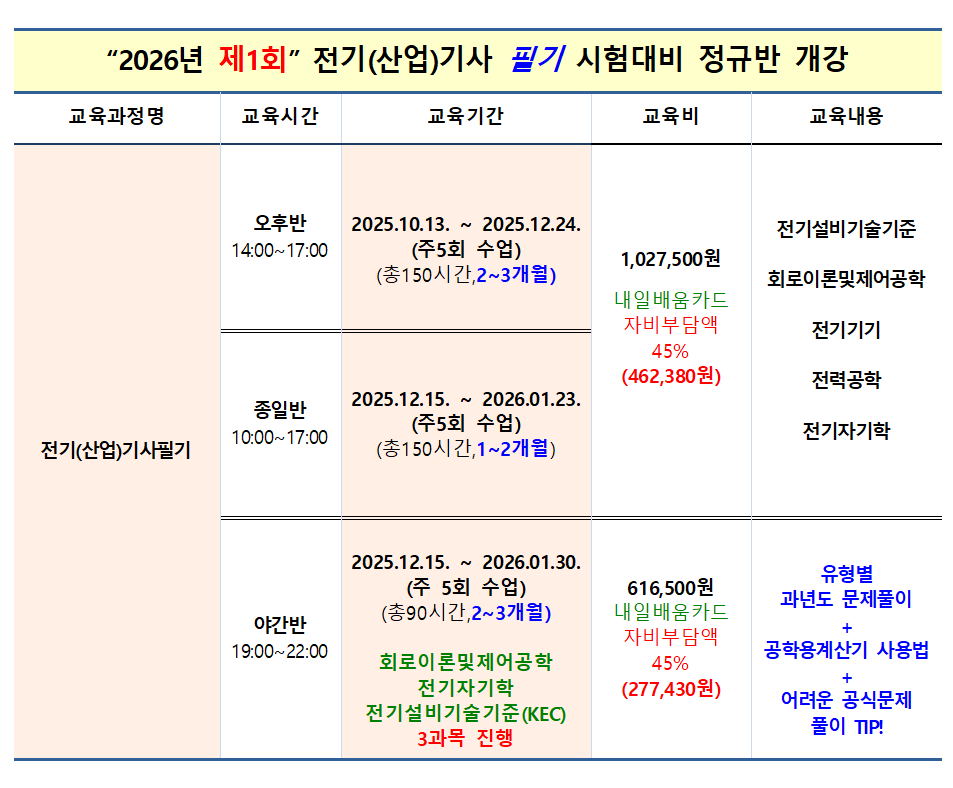 2026년 "1회" 전기(산업)기사 "필기" 시험대비 개강 작성자대전전기학원|작성시간25.09.29|조회수343 목록 댓글 0 글자크기 작게가 글자크기 크게가 다음검색 현재 게시글 추가 기능 열기 북마크 공유하기 신고 센터로 신고 댓글 댓글 0 댓글쓰기 답글쓰기 댓글 리스트