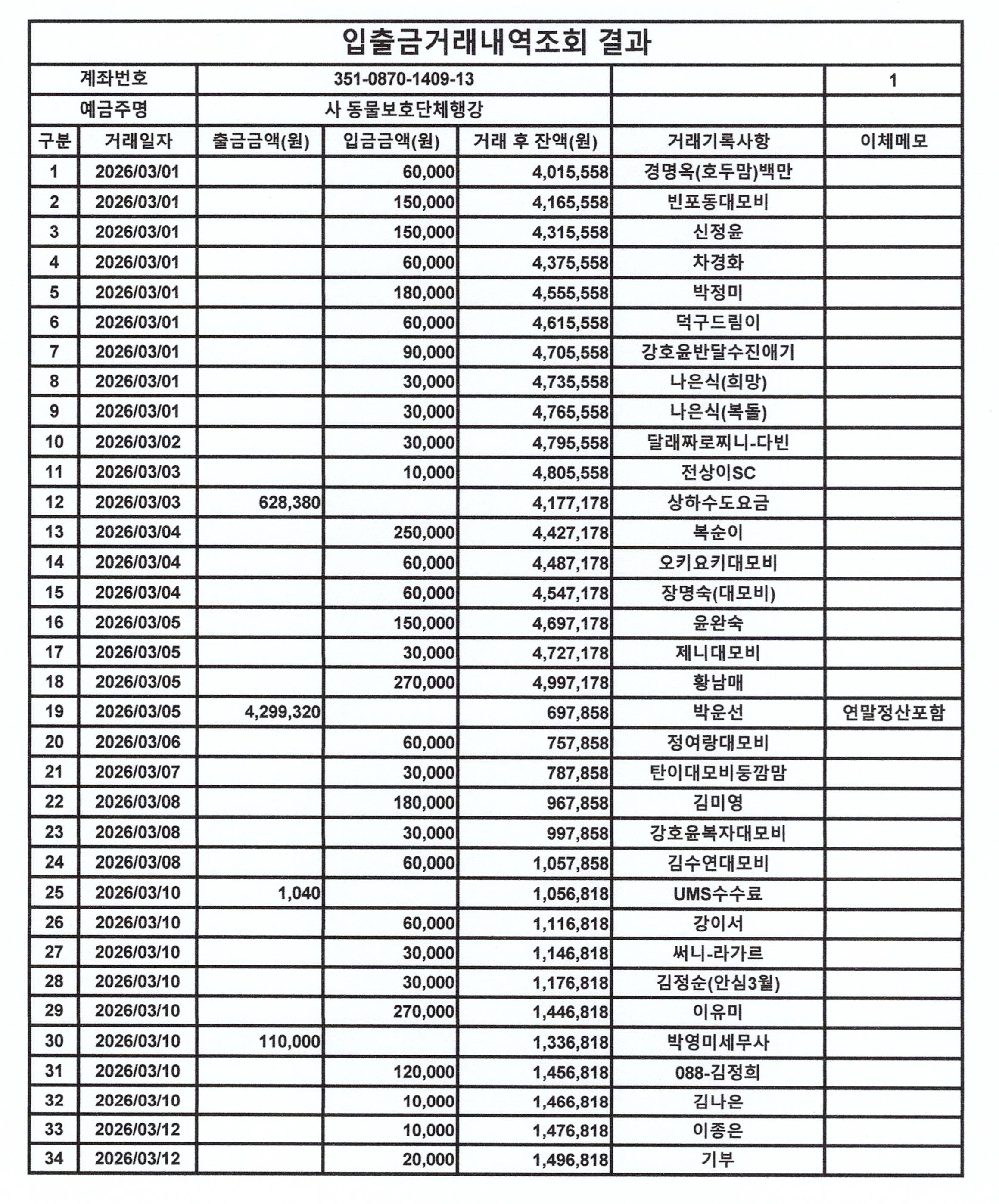사단법인 동물보호단체 행강의 동물보호 및 동물복지 활동을 위하여