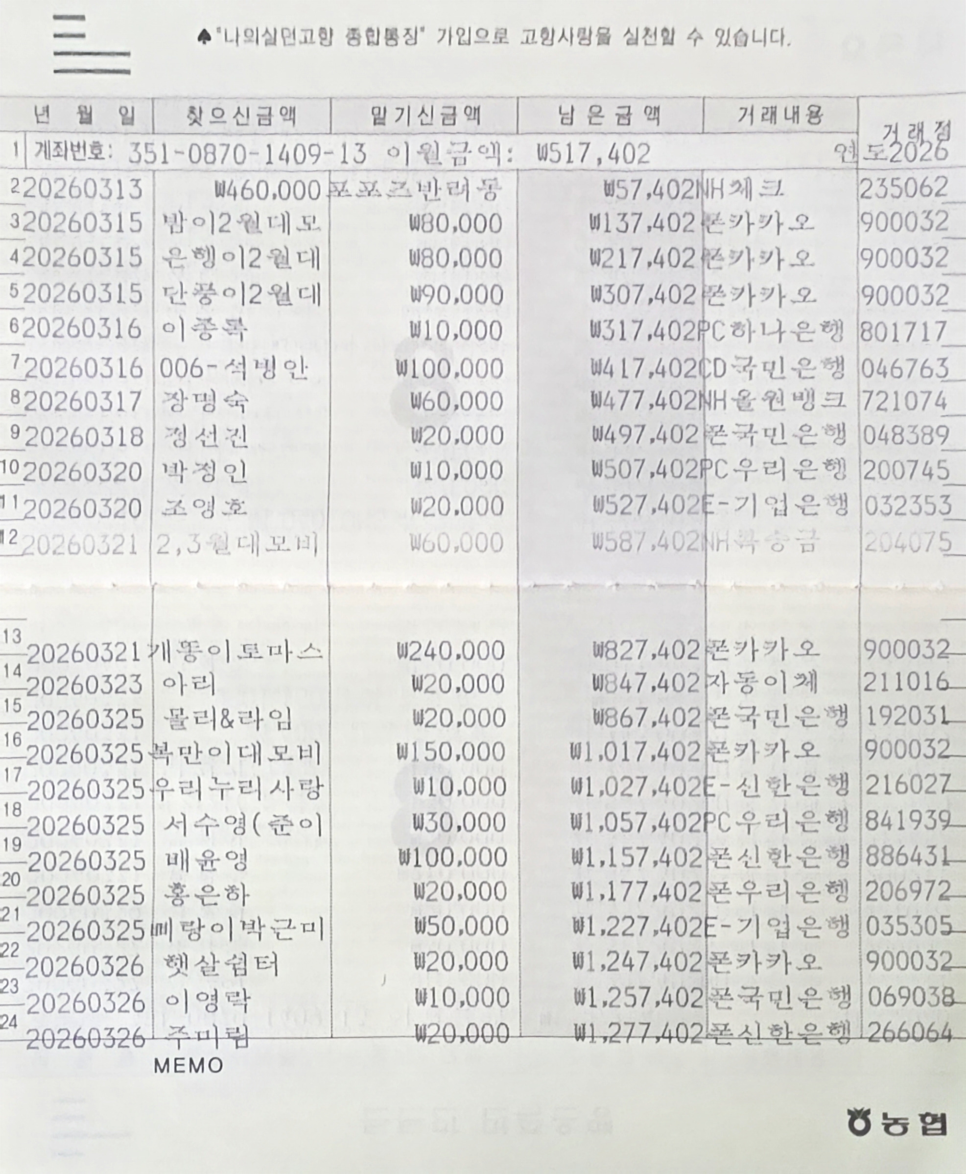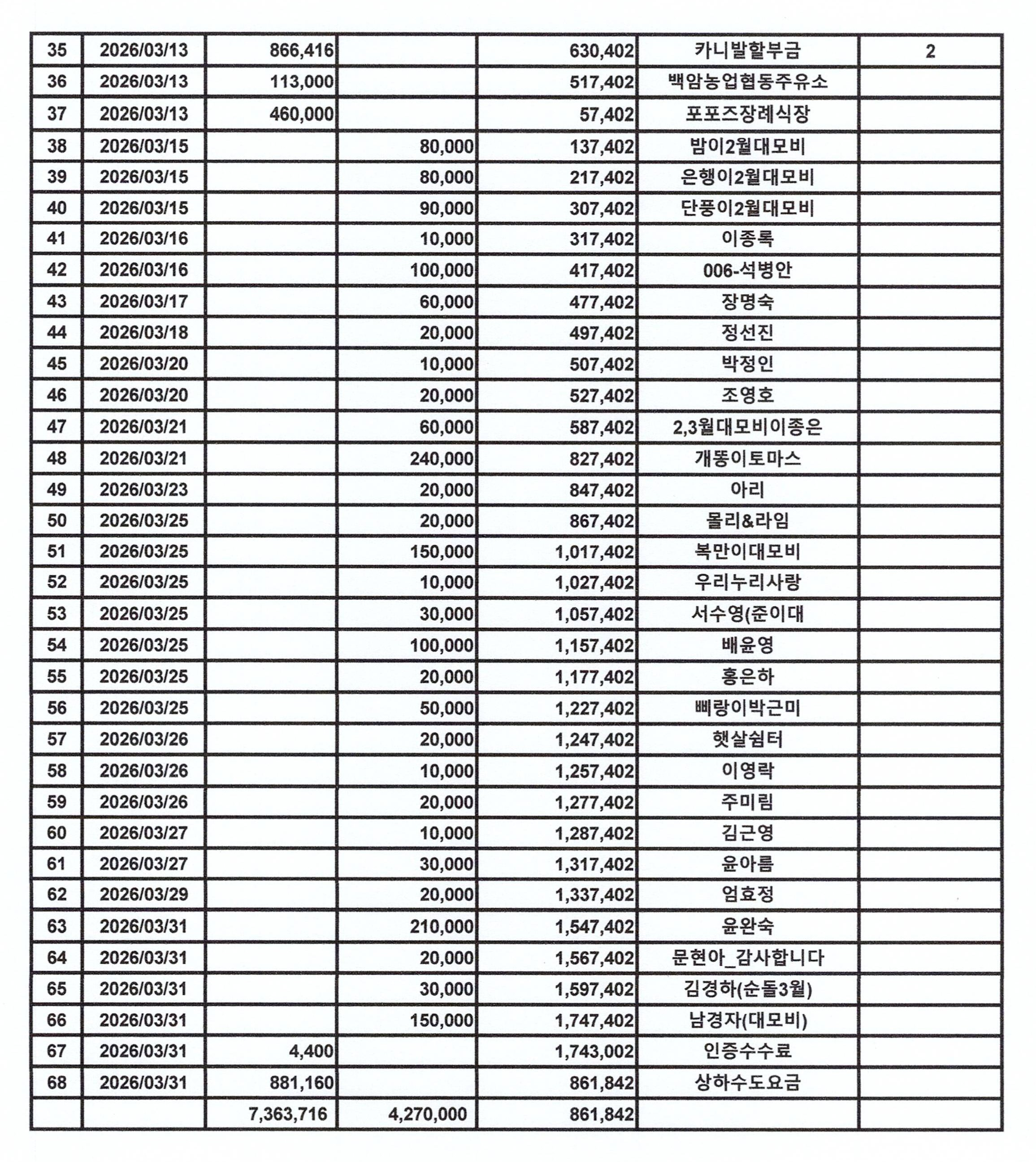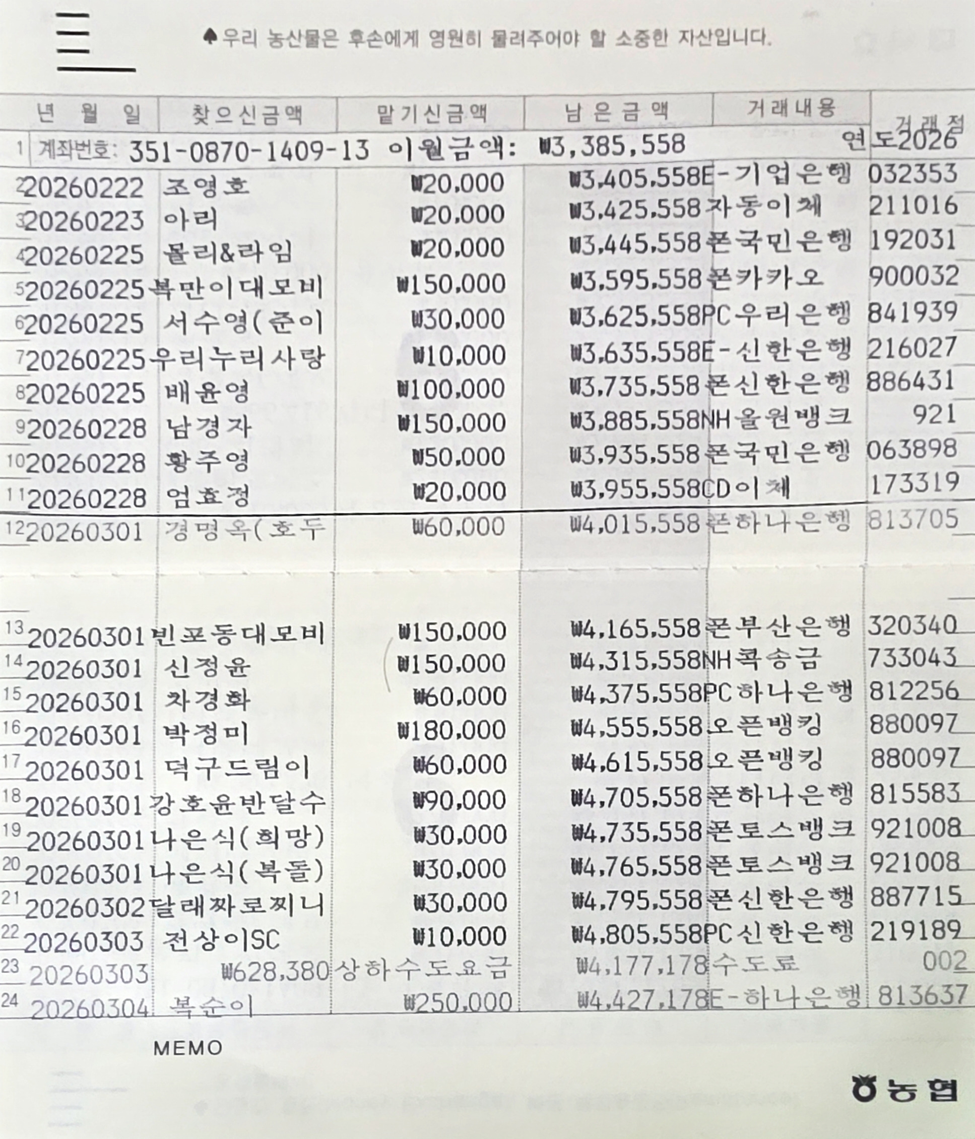 회원님들께서 십시일반으로 보내주신 후원금은 아이들을 위하여 소중하게 사용 하도록 하겠습니다,