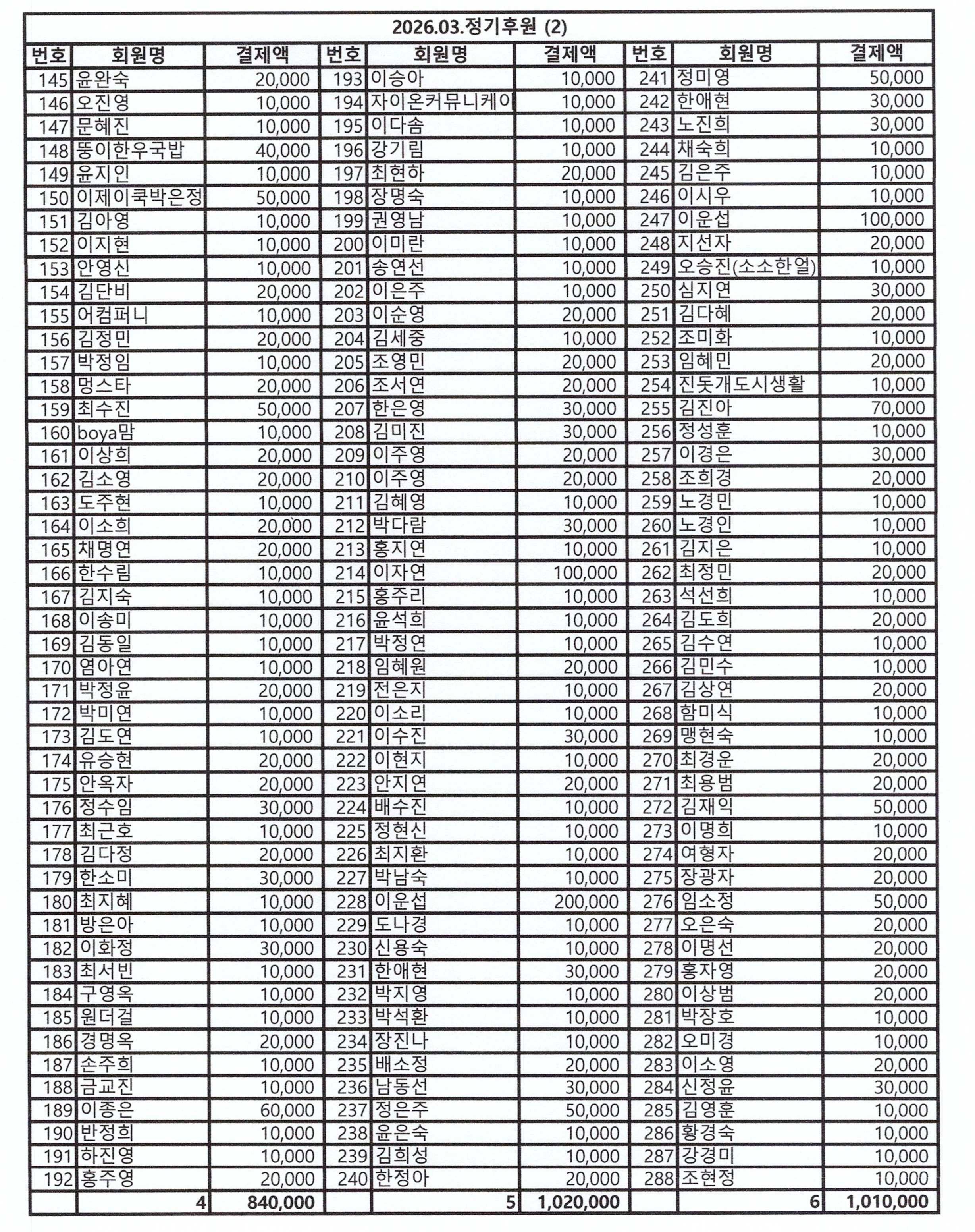 후원으로 함께 해주신 모든 분들께 감사 드립니다,
