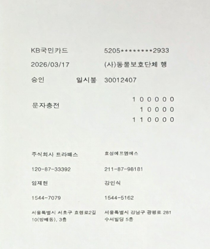 피학대 동물 구호 및 동물복지정책 활동비용으로 사용 되어집니다.