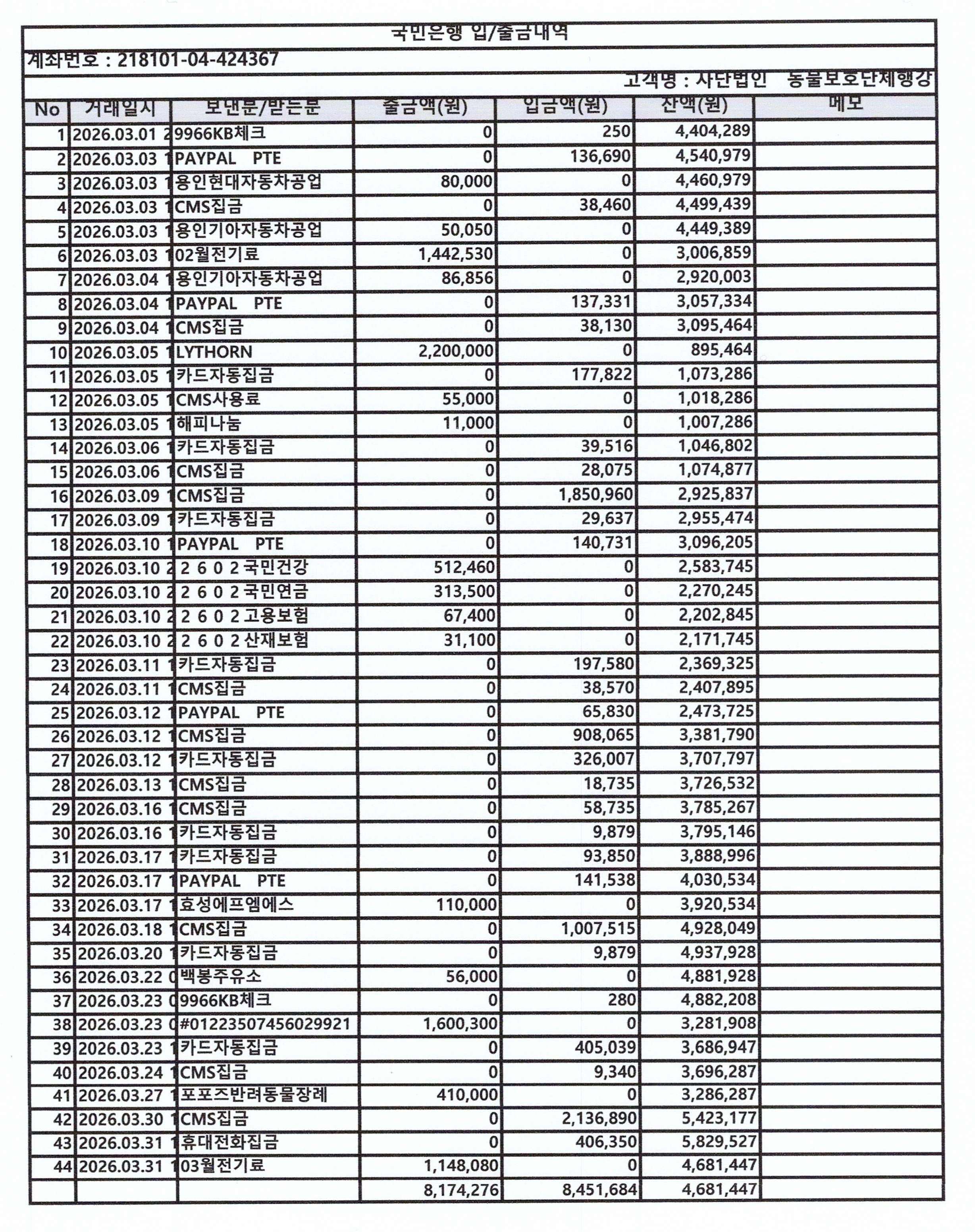 사단법인 동물보호단체 행강의 동물보호 및 동물복지 활동을 위하여