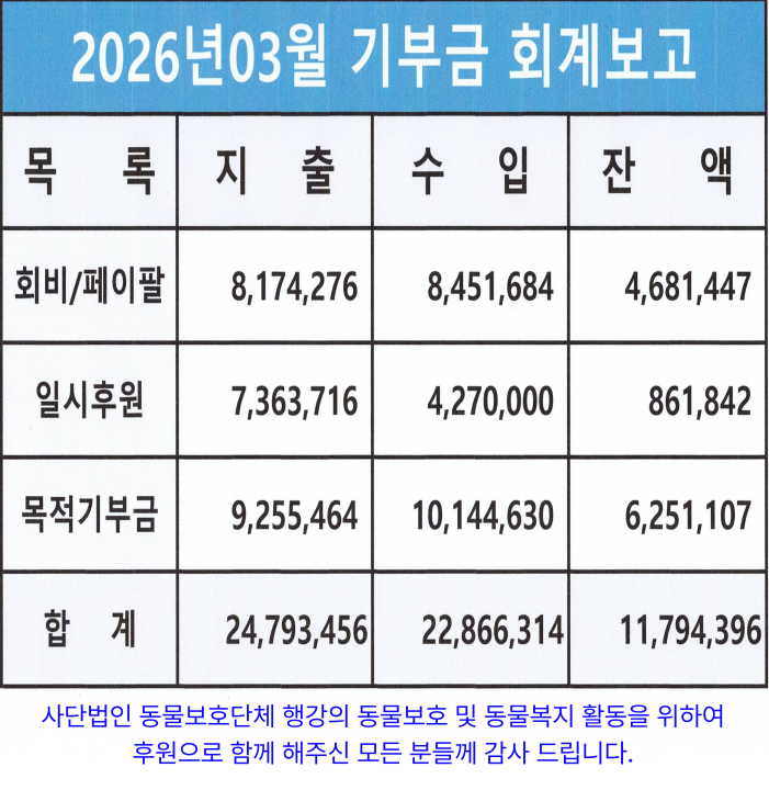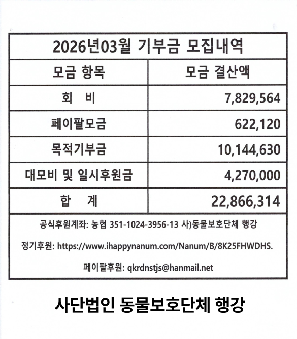 사단법인 동물보호단체 행강의 동물보호 및 동물복지 활동을 위하여