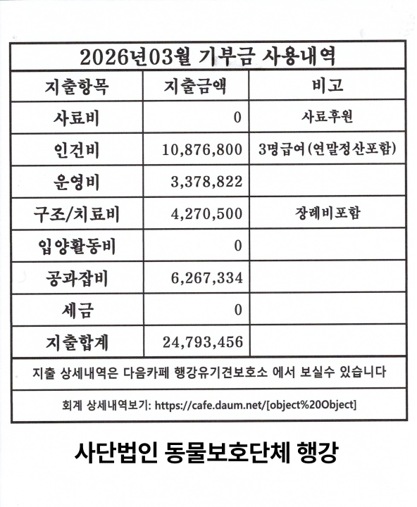 피학대 동물 구호 및 동물복지정책 활동비용으로 사용 되어집니다.