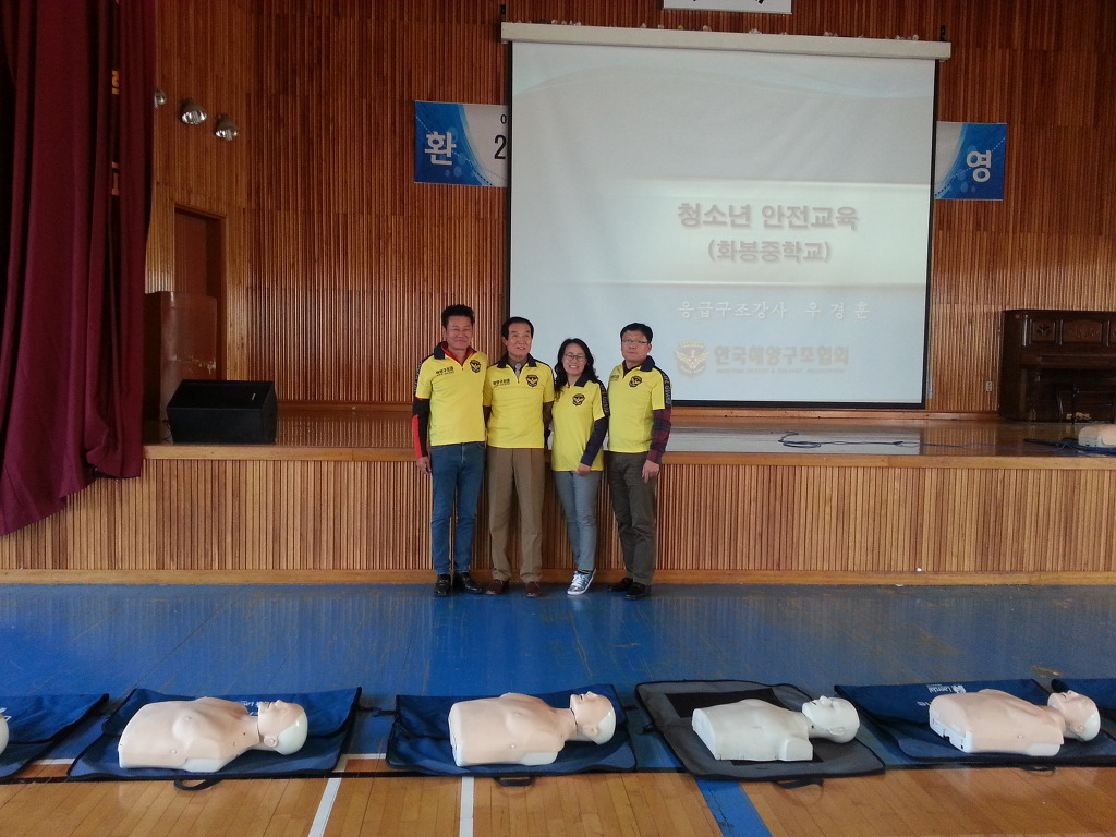 화봉중학교 안전교육(2014. 11. 21.) 작성자한국해양구조협회 울산지부|작성시간14.11.26|조회수147 목록 댓글 0 글자크기 작게가 글자크기 크게가 화봉중학교 안전교육 일시: 2014. 11.21.(금) 14:15~15:20 장소: 화봉중학교 강당 대상: 330명(1,2학년) 강사: 우경훈 보조: 김영미, 최원이, 김채학, 윤상희, 이봉근 다음검색 현재 게시글 추가 기능 열기 북마크 공유하기 신고 센터로 신고 댓글 댓글 0 댓글쓰기 답글쓰기 댓글 리스트