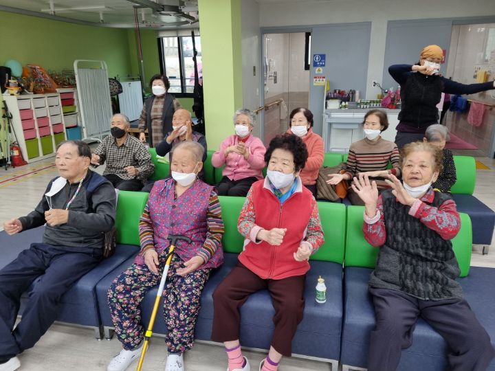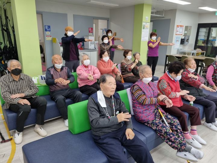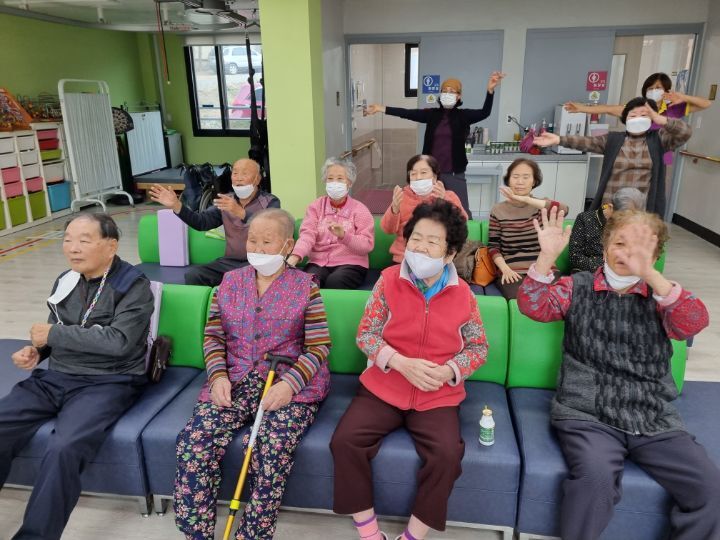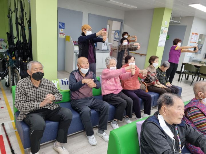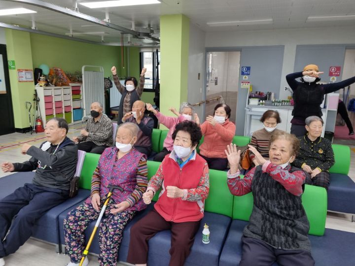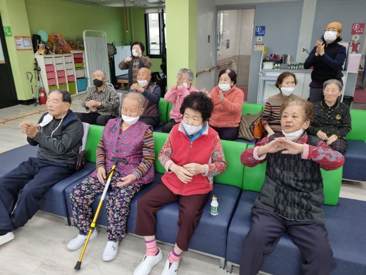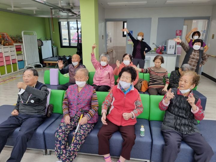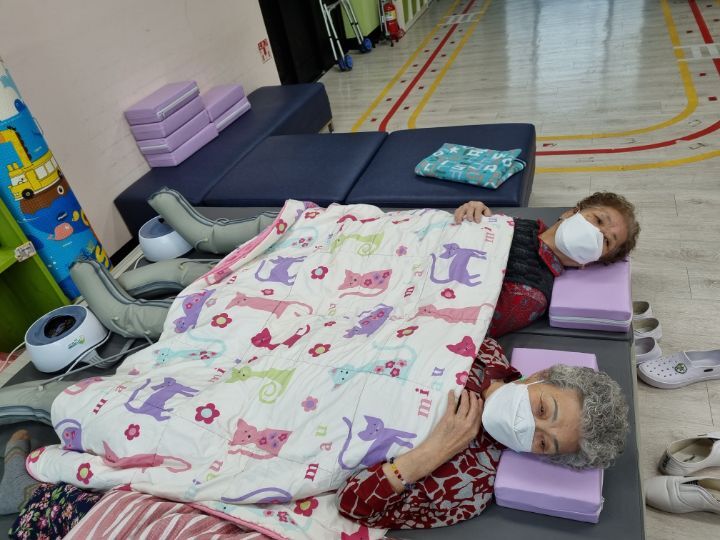 ์ด๋ฅด์ ๋ค๊ป์ ํ๊ณผ ๋ค๋ฆฌ๋ฅผ ์์ง์ฌ ๋ณด์๋ฉด์ ์ฆ๊ฒ๊ฒ ์ฒด์กฐ๋ ํ์๊ณ ์ ๋๋ ๋