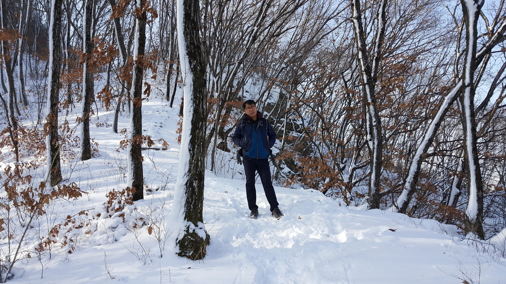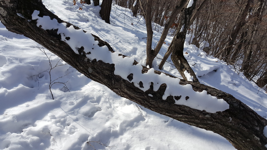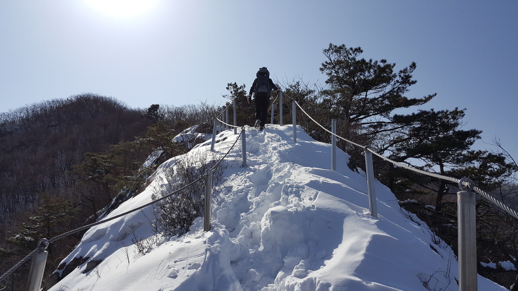 산중턱에 위치한 칼바위는 눈이 50cm정도 쌓여있고 양쪽은 낭떨어지로 위험 코스다.