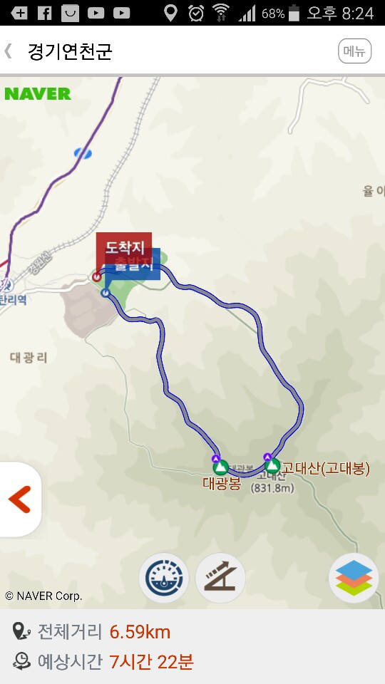 목적지는 연천에 위치한 고대산(832m)으로 철원평야 넘어로 북녁땅이 내려다 보이는 곳 이다.