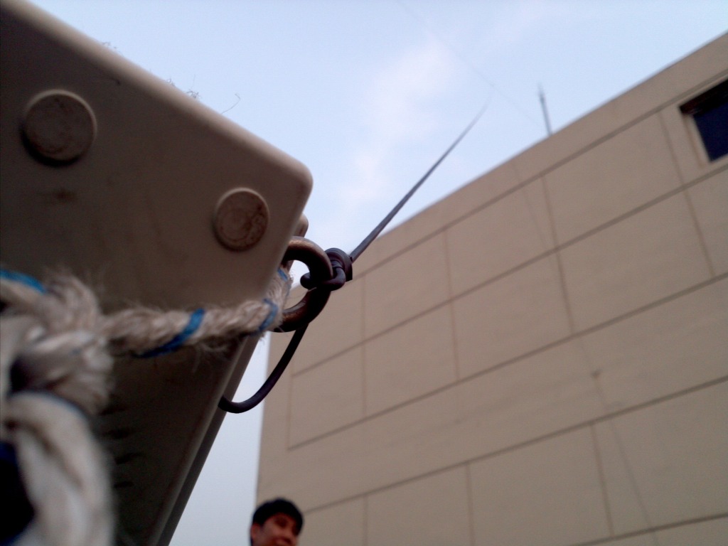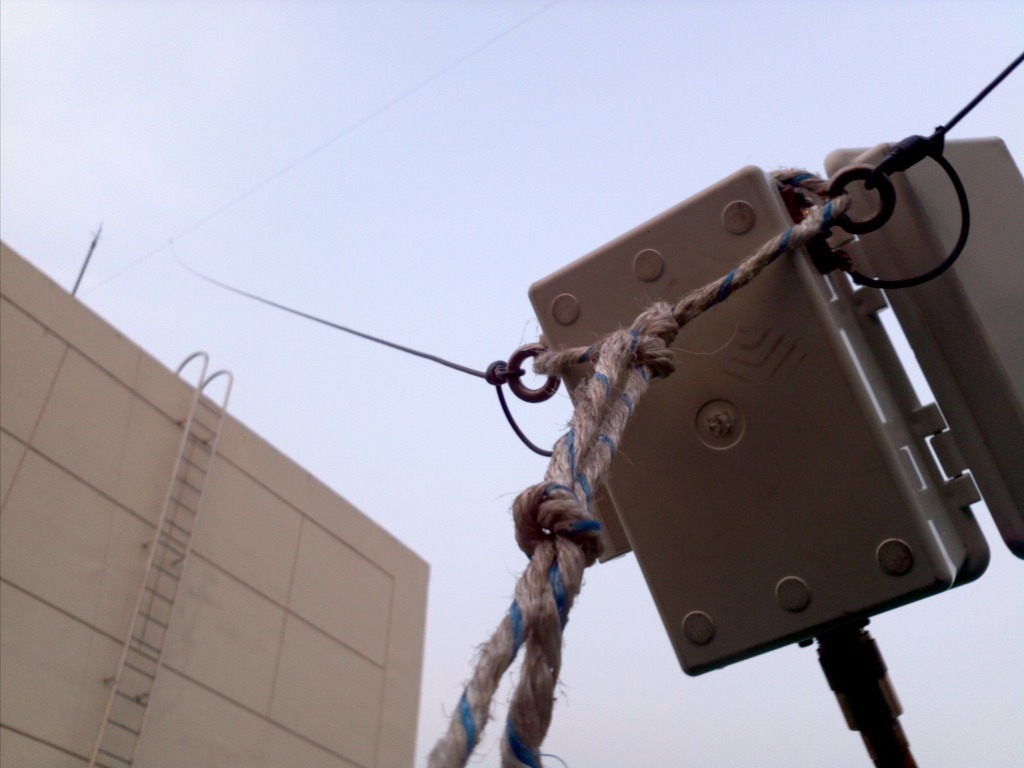 위와같은 이유에서 하나의 안테나로 7,14,21(,28)MHz을 튜너 없이 사용 할 수 있는 "40m Single Delta Loop" 에 대해서 이야기 해 보겠다. 아래 사진은 6K2EJJ om댁의 아파트 옥상에 설치된 안테나이며 당시 설치 시간은 30여분 정도로, 간단한 구조로 되어있다.복잡한 계산은 생략하고 그냥 제작/조정 과정만 간단히 적어보겠다.