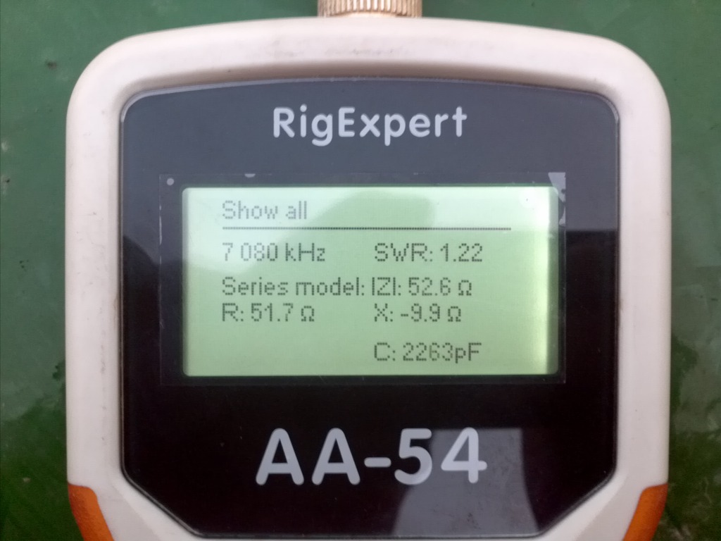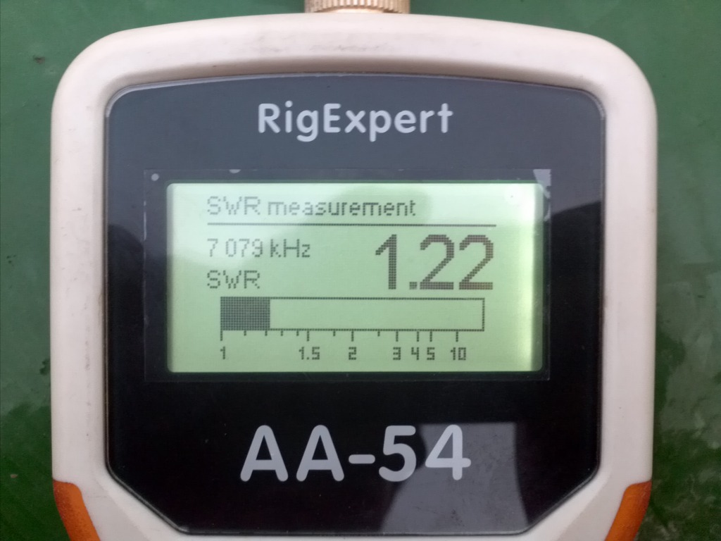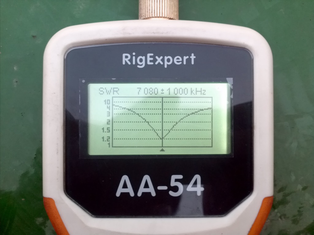 역삼각형의 윗변 길이를 늘였다 줄였다 해서 7MHz기준으로 VSWR을 조정하면된다. 그 때 삼각형의 나머지 두 변의 길이를 가능한 한 똑같이 맞추는것이 조정이 쉽다. 7MHz만 제대로 조정하면 나머지 윗 밴드들은 알아서 척척 맞는다.