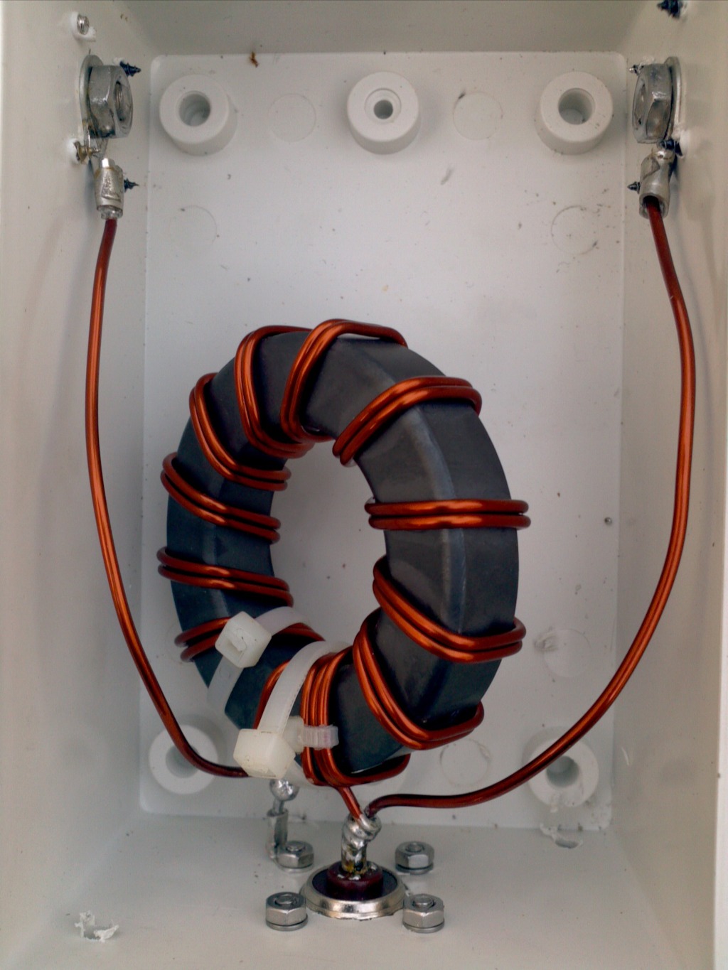 4:1 Balun : FT-240-43 코어에 1.6mm 에나멜선 10회 감아서 제작 (코어와 에나멜선 재질이 바뀌면 Turn수와 효율이 변함)