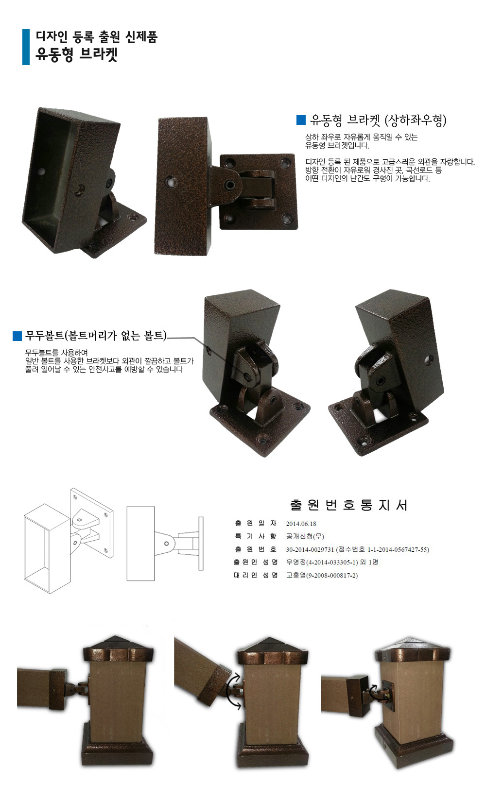 경사진 곳, 곡선형태의 난간 등 어떤 디자인의 난간도 구현이 가능한 유동형 브라켓 입니다.