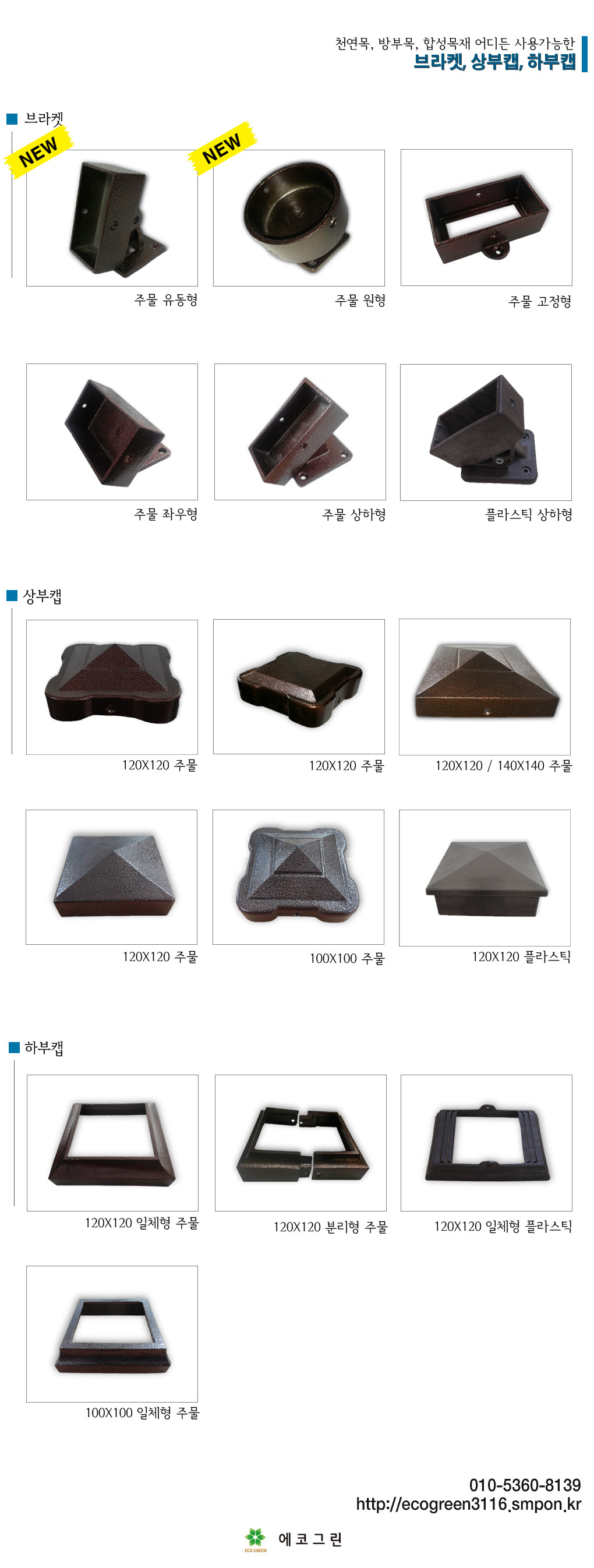 천연목, 합성목재, 방부목 자재가리지않고 시공가능한 브라켓, 상하부캡입니다.