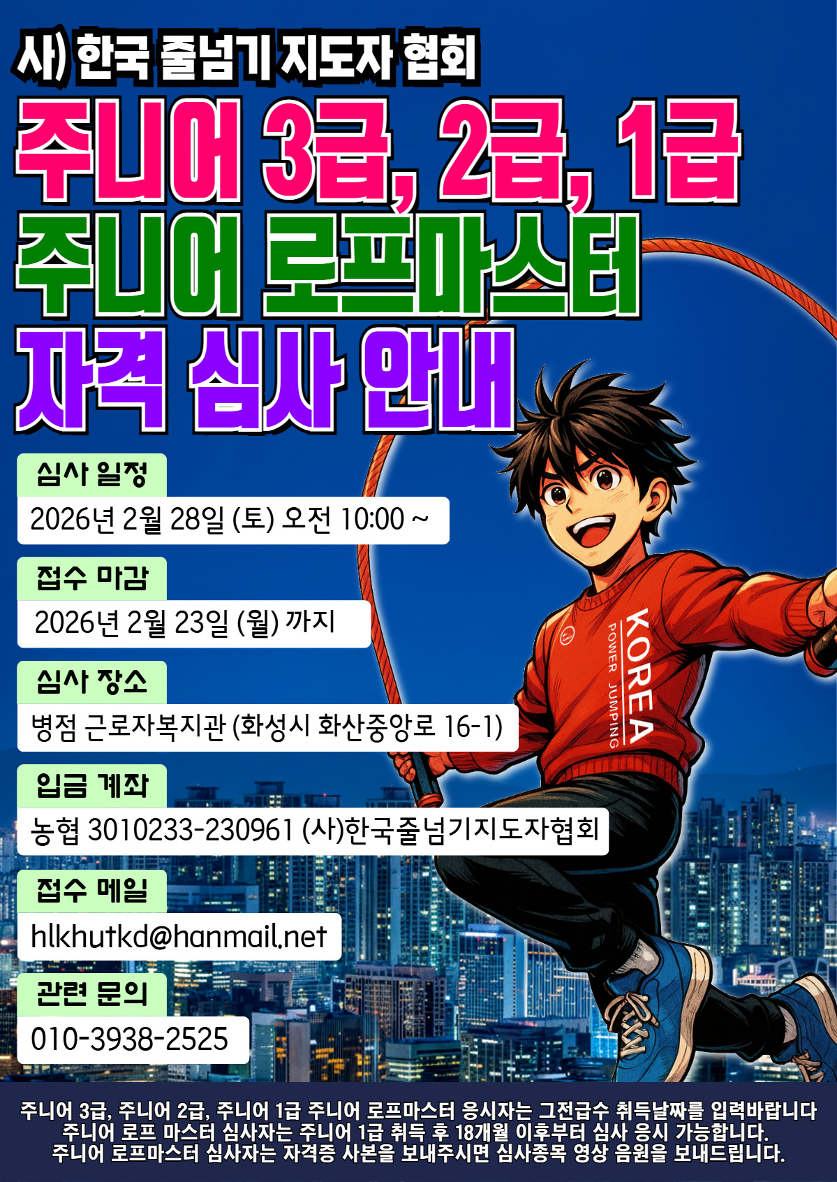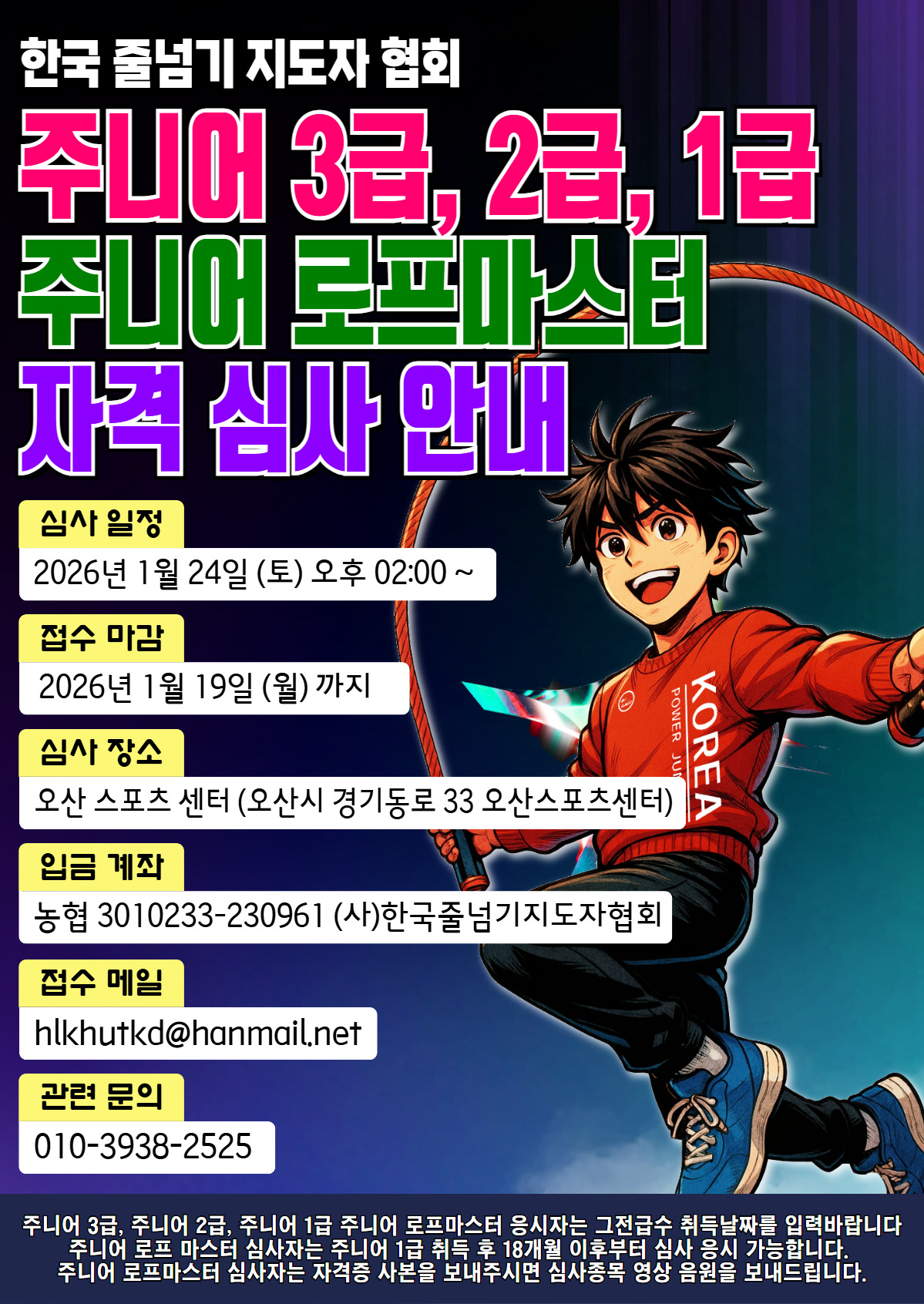 사) 한국 줄넘기 지도자협회 주니어 심사안내