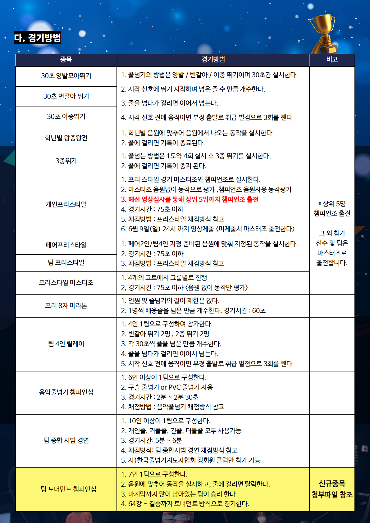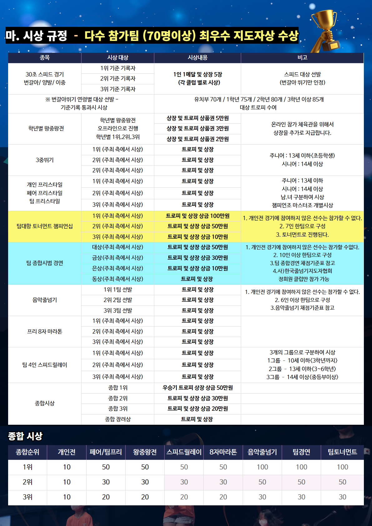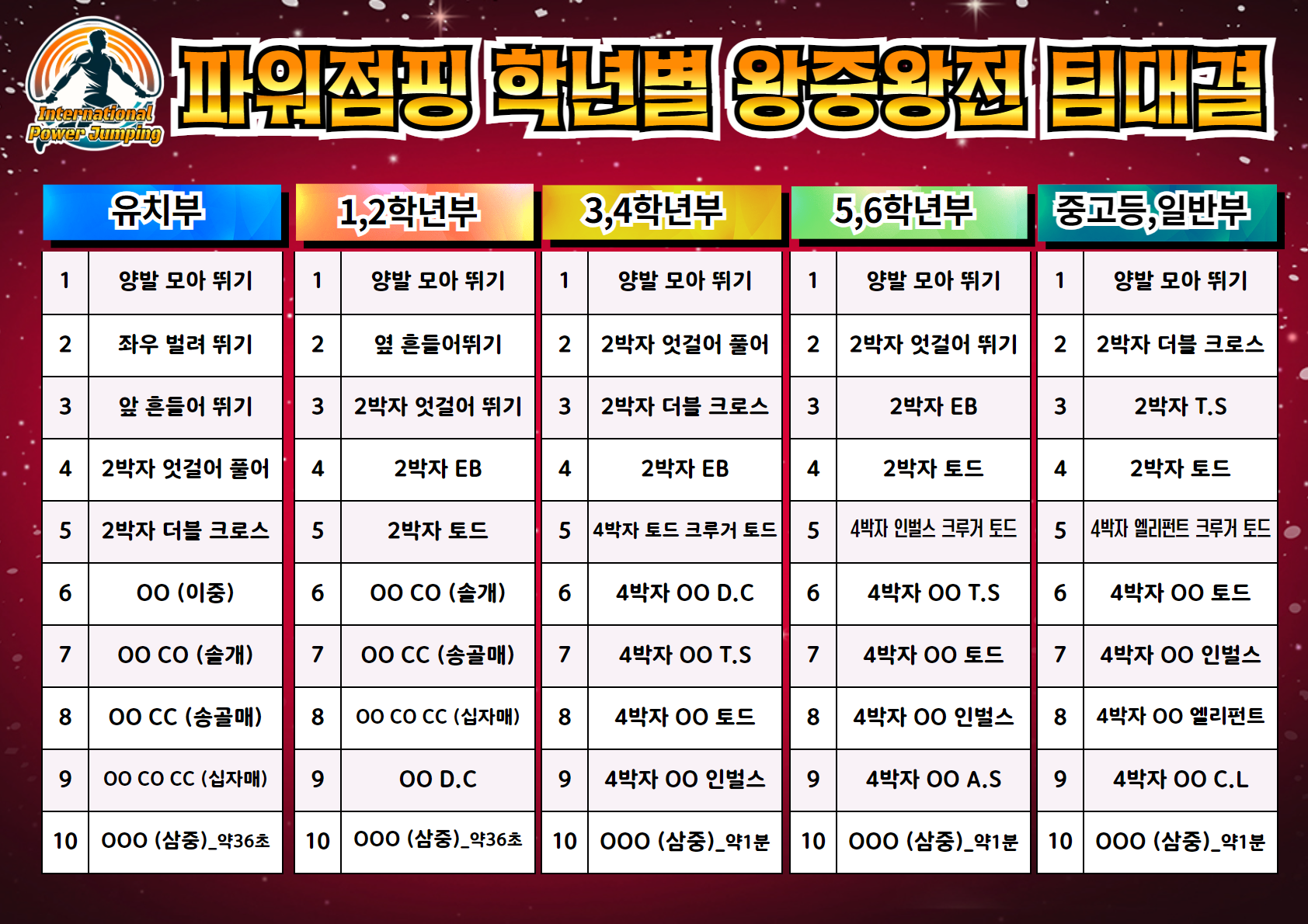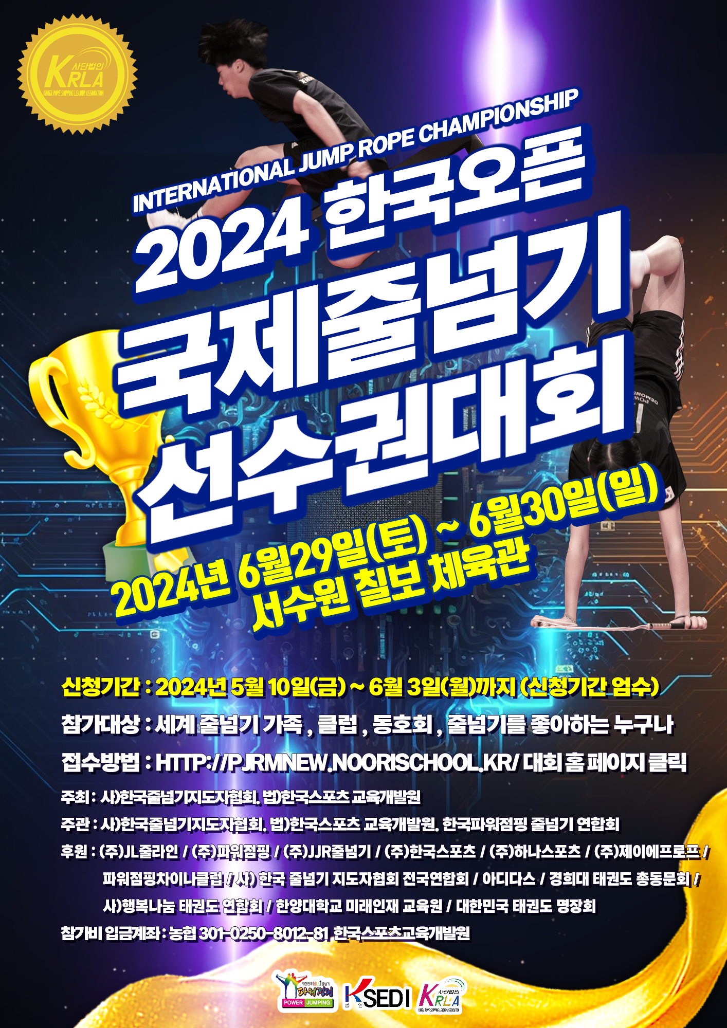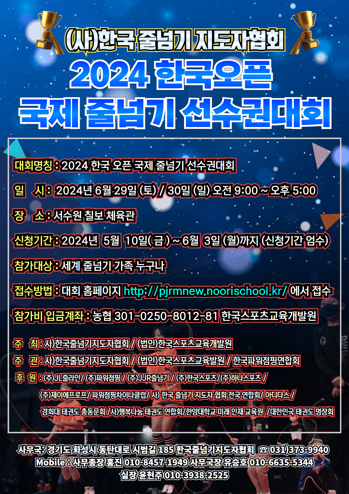 후 원 : (주)JL줄라인/ (주)파워점핑 / (주)JJR줄넘기 / (주)한국스포츠/(주)하나스포츠 / (주)제이에프로프