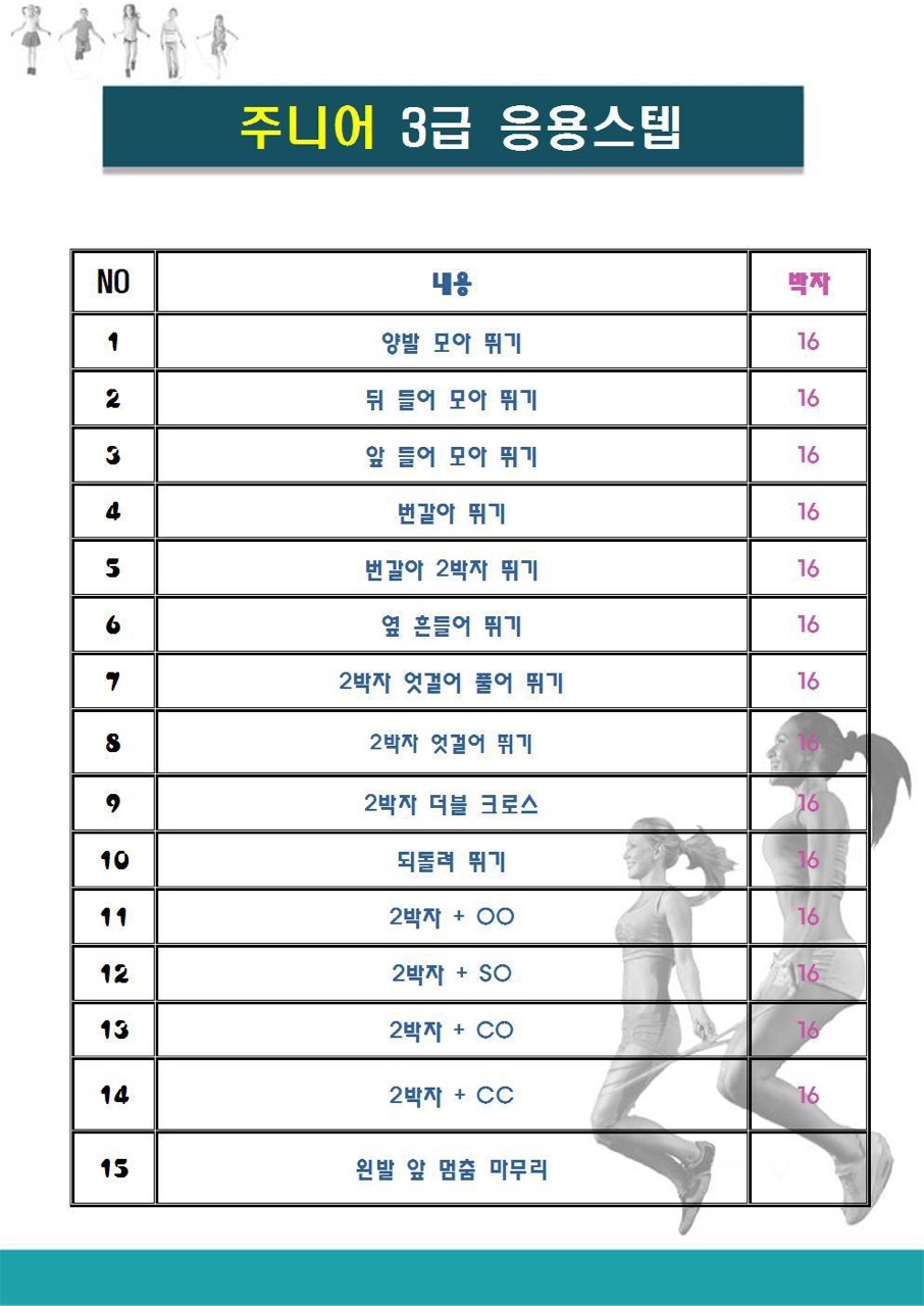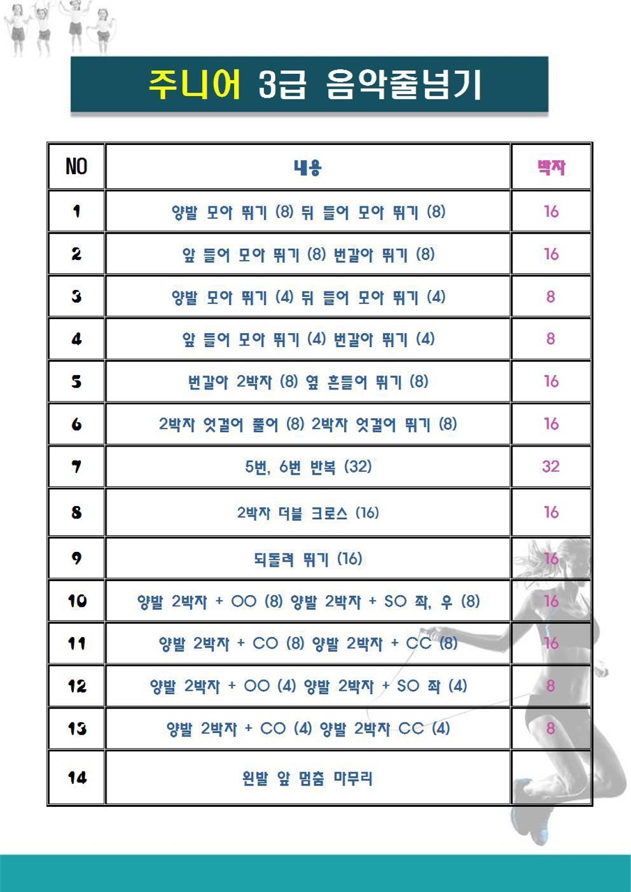 사)한국줄넘기지도자협회 주니어3급 음악줄넘기 응용기본스텝