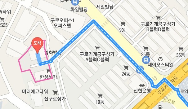 *그 앞에서 직진 80m 정도 한성상가 건물 A,B동이 보입니다.