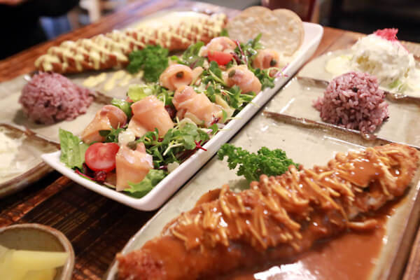 가게 내부는 크지 않지만 테이블 몇 개와 다찌 자리로 깔끔하게 구분, 배치해 놓아 편안한 식사를 할 수 있다. 메뉴의 라인업은 스시와 샐러드, 숯불구이 덮밥, 면류와 돈부리, 나베 메뉴까지 다양하게 준비되어 있어 선택할 수 있는 폭이 넓고 점심시간 이용 시 런치 메뉴를 보다 합리적인 가격에 맛볼 수 있다. 대표적인 메뉴인 연어 초밥은 두툼하고 식감이 좋은 연어를 크게 올려주는데 생 와사비를 사용하기 때문에 원한다면 생 와사비와 무순을 기호에 맞게 올린 다음 이곳만의 특제 간장에 살짝 찍어 먹으면 된다.