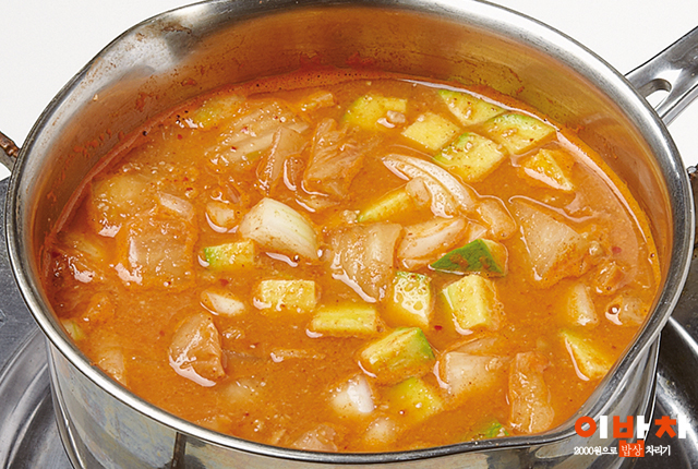 햇콩이 나는 11월은 청국장이 제철이에요. 쌀쌀한 날씨에는 청국장의 구수한 냄새가 더욱 푸근하게 느껴지죠. 쇠고기를 넣으면 평범했던 청국장에 품격이 더해진답니다. 진한 육수는 물론 씹는 맛까지 살아나니 청국장을 즐기지 않았던 사람도 한 숟갈 맛보고 싶어질 거예요. 필수 재료 대파(15cm), 양파(1/2개), 두부(1/2모=145g), 김치(2/3컵), 쇠고기 차돌박이(150g) 선택 재료 청양고추(1개), 홍고추(1개), 애호박(1/3개) 육수 재료 무(1/2토막=75g), 국물용 멸치(10마리) 양념 청국장(2/3컵=100g), 고춧가루(1), 다진 마늘(0.5) 1. 대파와 고추는 송송 썰고, 양파, 애호박과 두부는 깍둑 썰고, 2. 무는 납작하게 썰고, 김치는 양념을 털어낸 뒤 송송 썰고, 3. 냄비에 물(4컵)과 육수 재료를 넣어 중약 불로 10분간 끓인 뒤 멸치면 체로 건져내고, [무(1/2토막=75g), 국물용 멸치(10마리)] 4. 청국장(2/3컵)과 고춧가루(1)를 섞고 육수에 넣어 덩어리 없이 풀고, *Tip. 육수(1/3컵)를 덜어 청국장을 섞은 뒤 넣으면 쉽게 풀려요. 4. 김치와 애호박, 양파를 넣어 중간 불로 끓이고, 5. 애호박이 반투명해지면 두부와 고추, 대파, 차돌박이, 다진 마늘(0.5)을 넣고 2~3분간 더 끓여 마무리. 이 레시피는 월간 이밥차에 수록되었습니다.