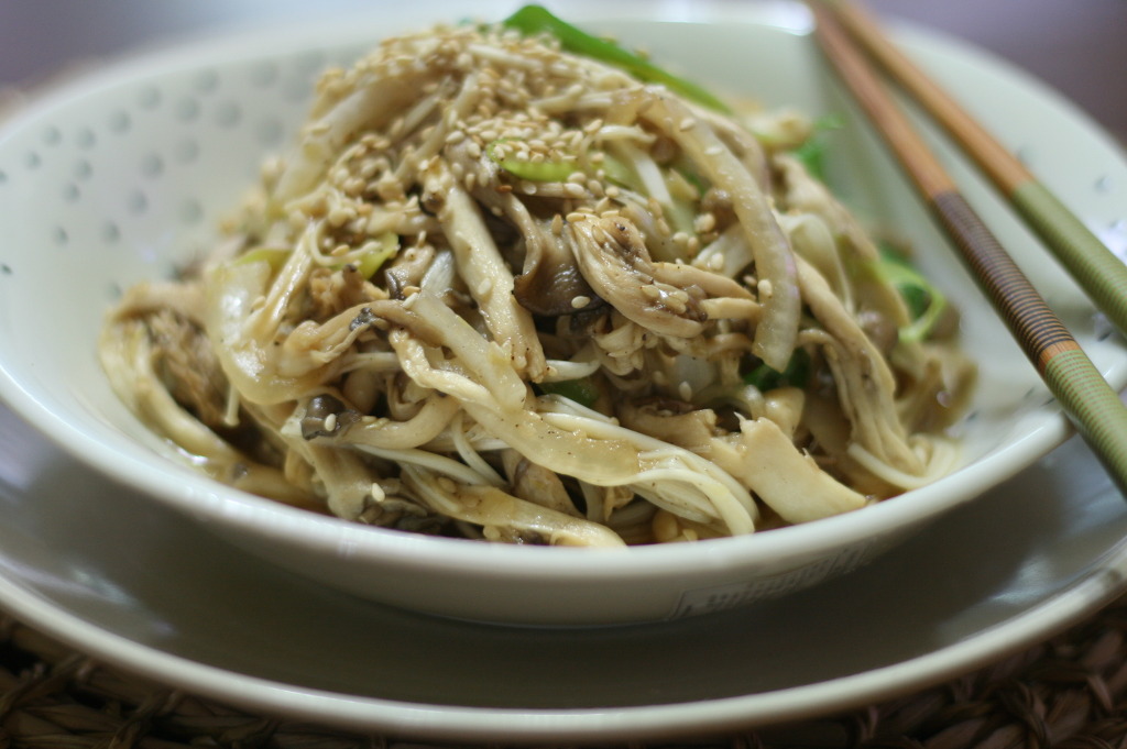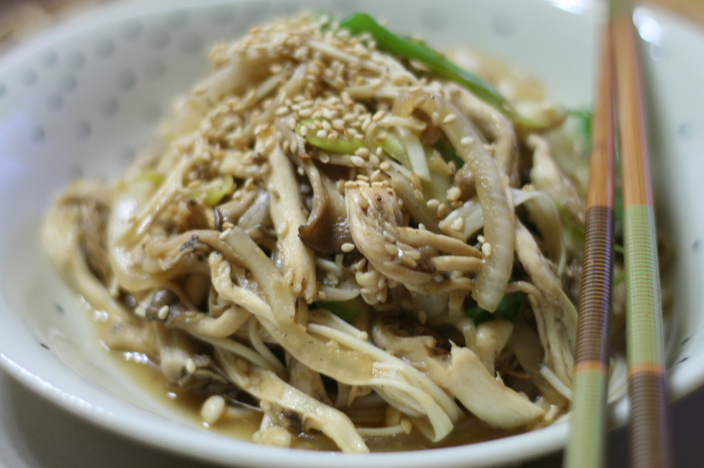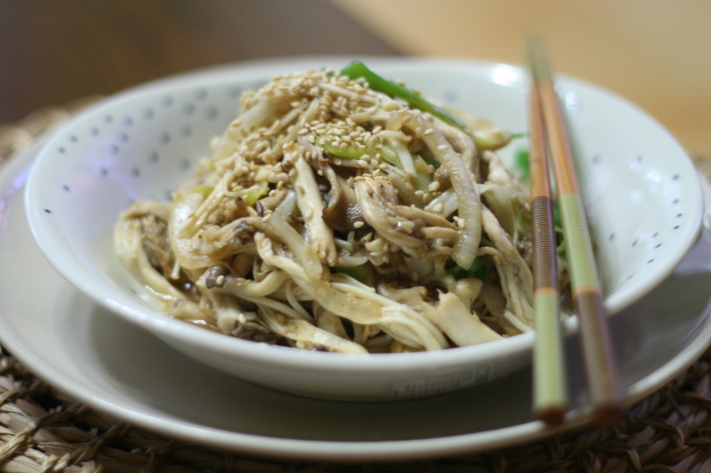 느타리버섯 1팩, 새송이버섯 1개, 팽이버섯 1봉, 양파 1개, 대파 1대, 통깨 약간