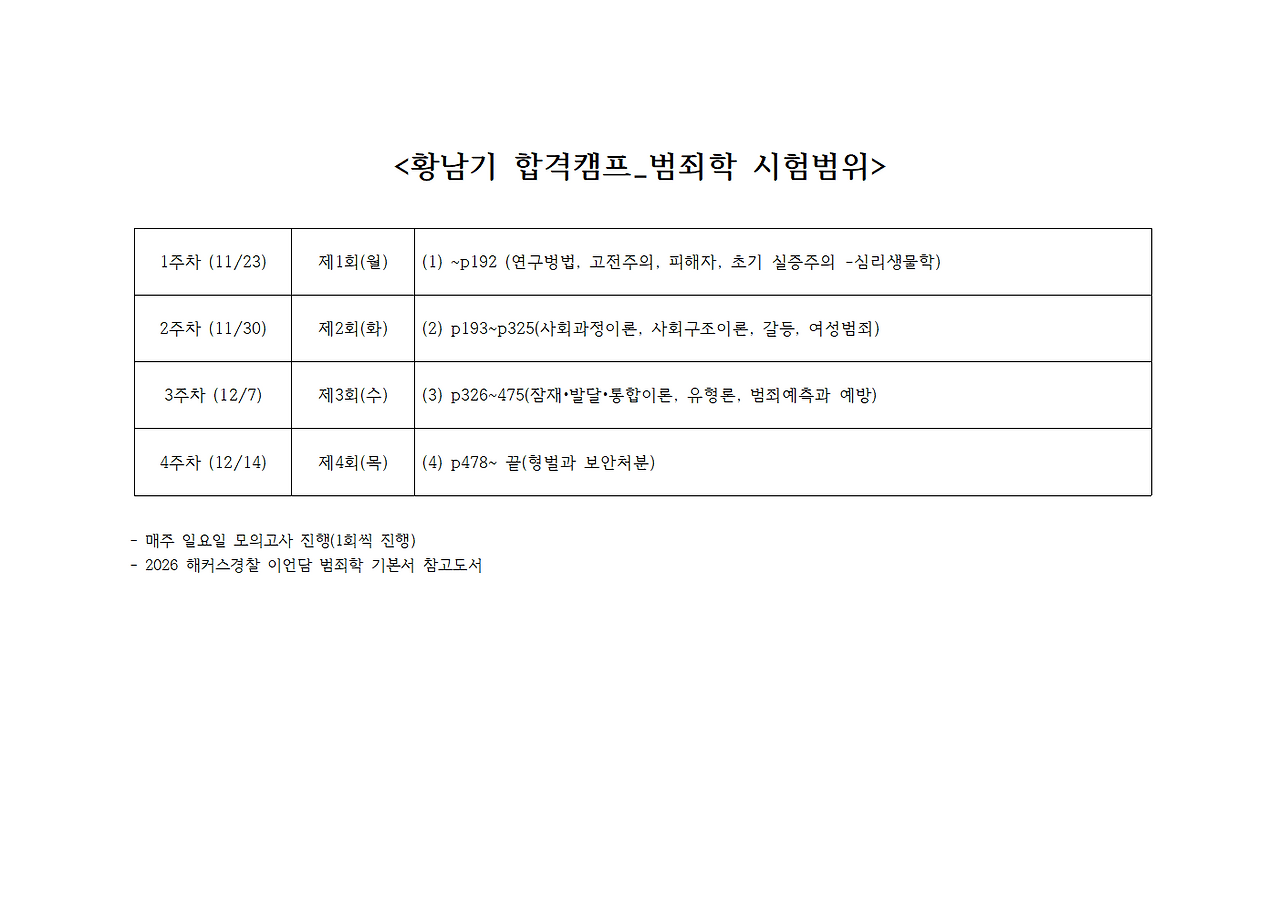 - 시작일 : 12. 21(일)~26. 1. 11(일) 범죄학(4주)
