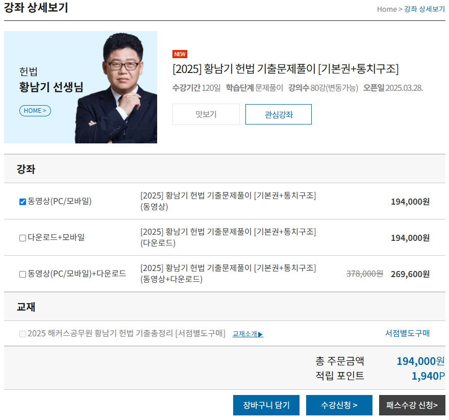 강의명 : [2025] 황남기 헌법 기출문제풀이 [기본권+통치구조]