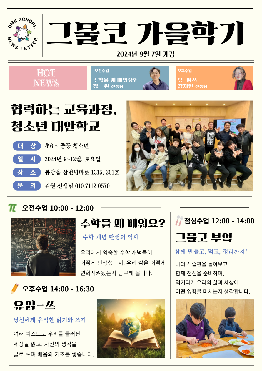 청소년들 공부에 기본이 되는 수업들로 진행한다고 하니 관심있는 분들은 참고하시면 좋을 것 같네요~^^.