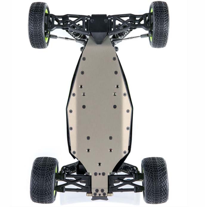 The chassis can accommodate multiple battery mounting options. Milled pockets have been added that lighten the overall weight of the chassis. The pockets also function as mounting stations for the optional brass ballast weights (sold separately).