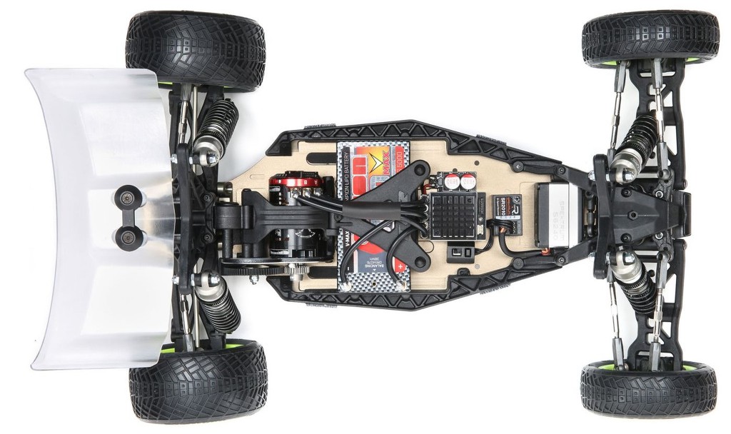 To maximize the top speed and performance of a stock motor, the drive train has been lightened with a Direct Drive System including a shortened top shaft, narrower idler and diff gears, aluminum diff hubs with composite outdrives and aluminum CVA driveshafts.