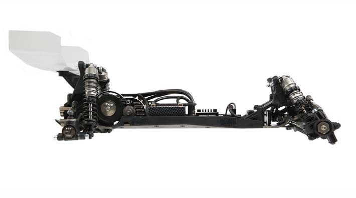 The 3-gear laydown transmission moves the motor forward by 20mm+ to a central motor location, providing a chassis that drives much flatter, more consistent and corners quicker-a crucial advantage in the 17.5 spec buggy race class.