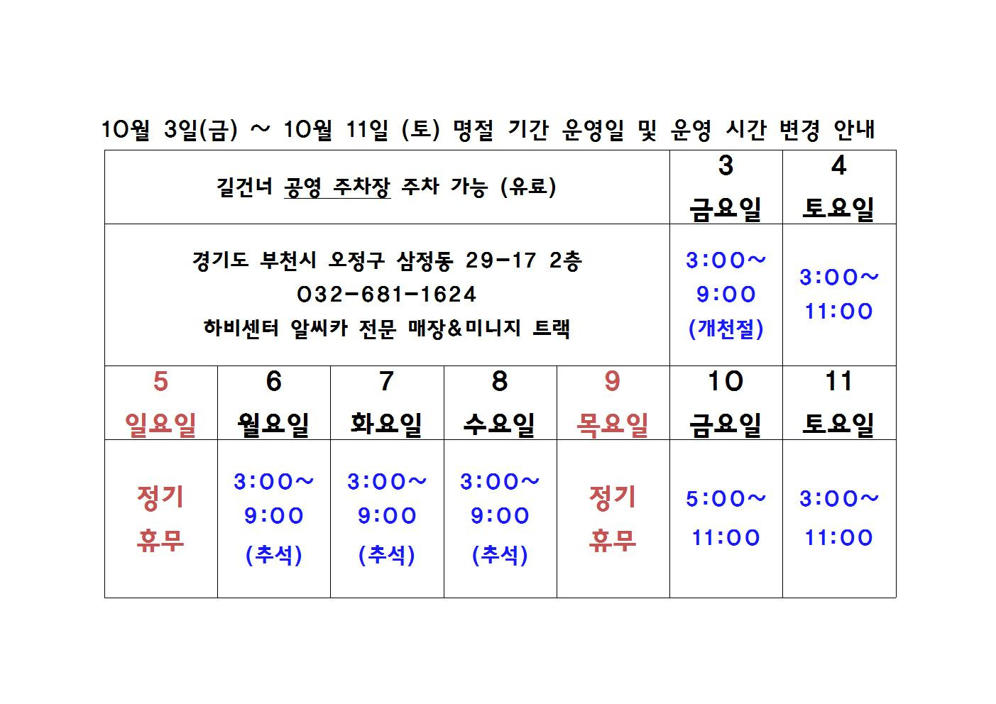 [하비센터] 10월 (개천절,추석명절) 시간변경 특별 운영 안내 (-4)