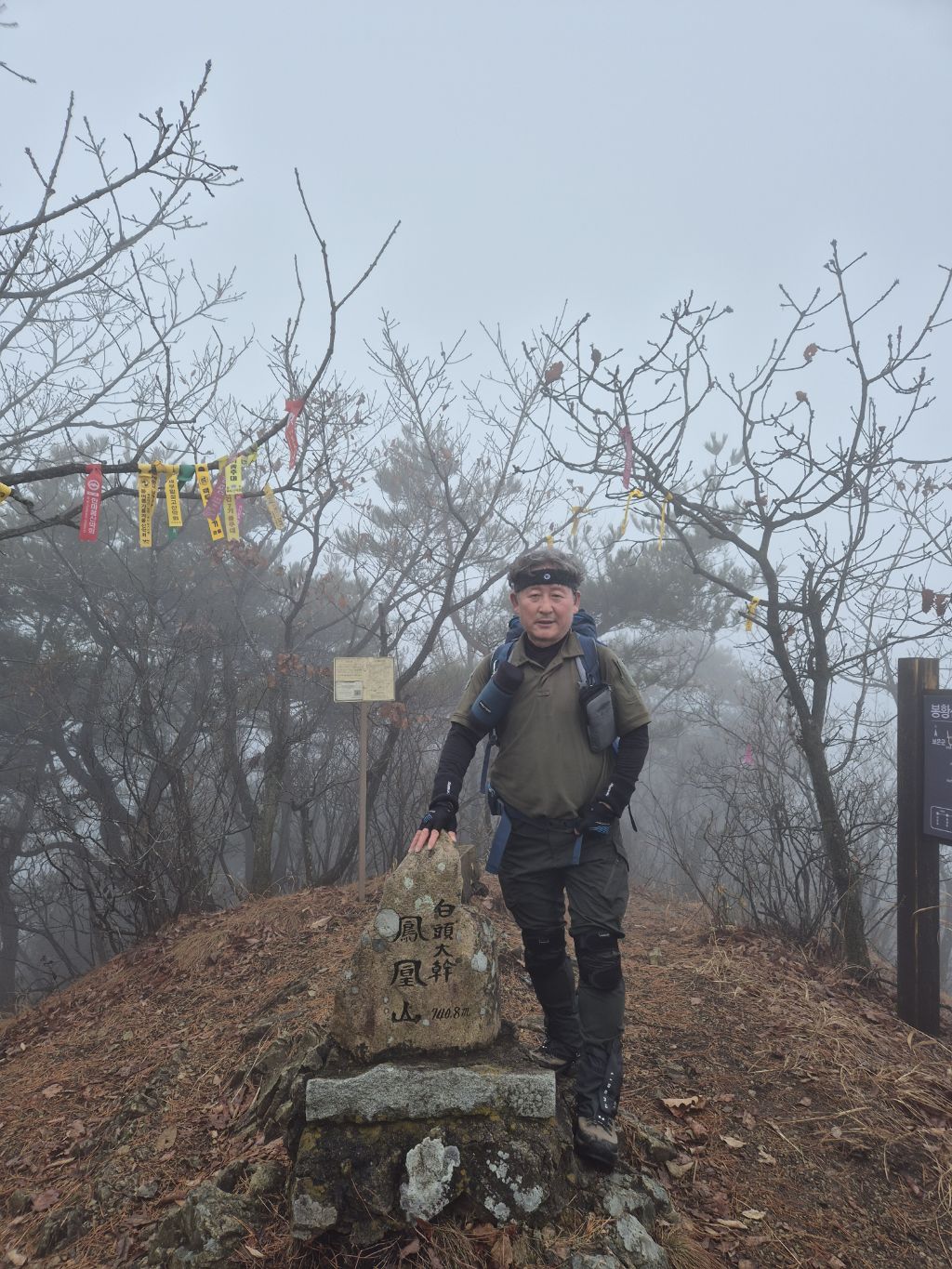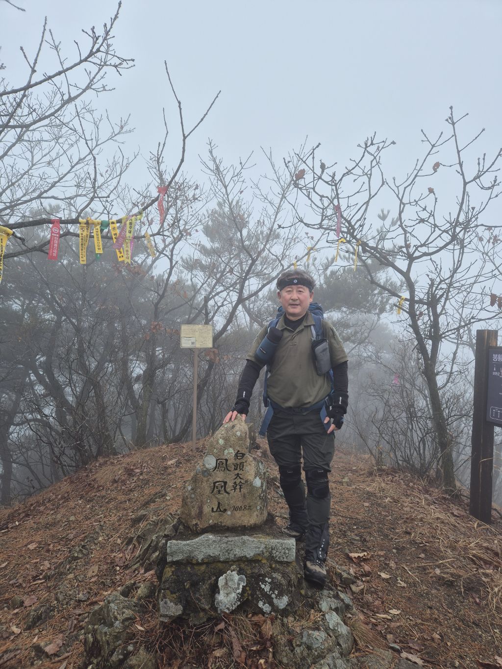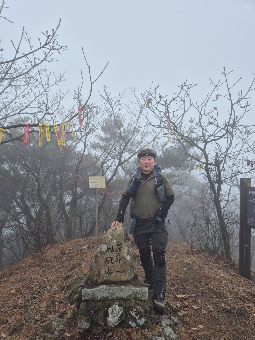 봉황산 인증후 대간길은 정상석 뒤로