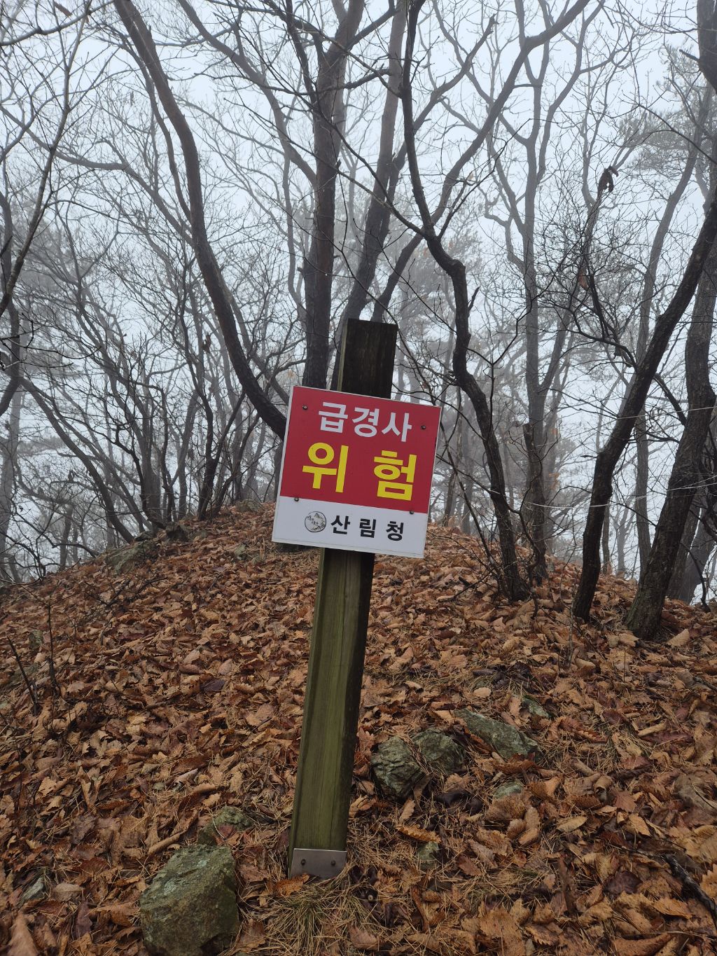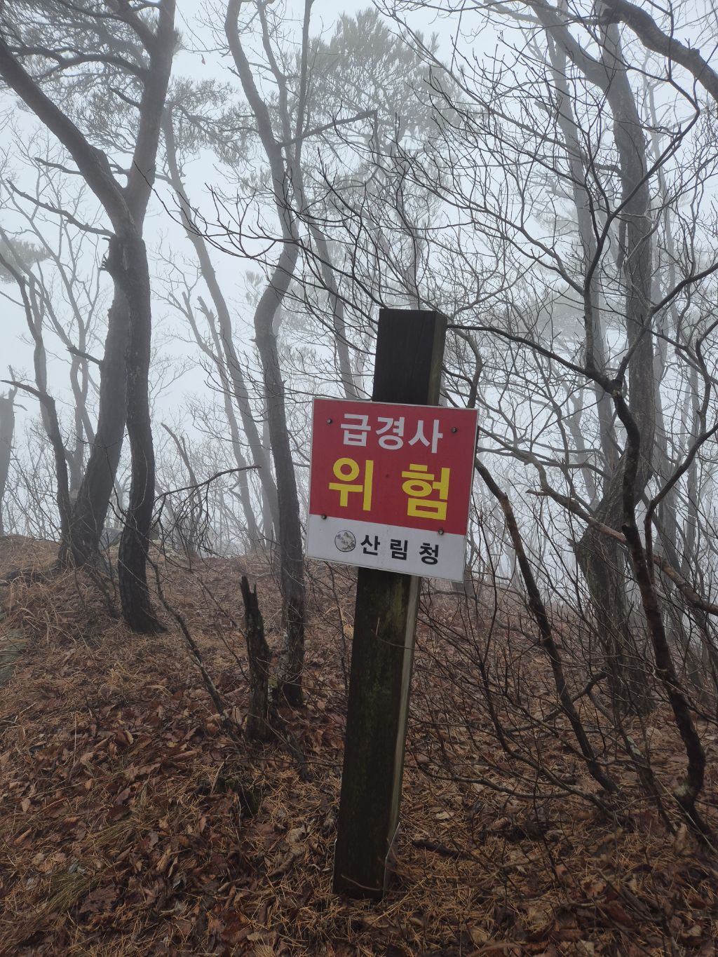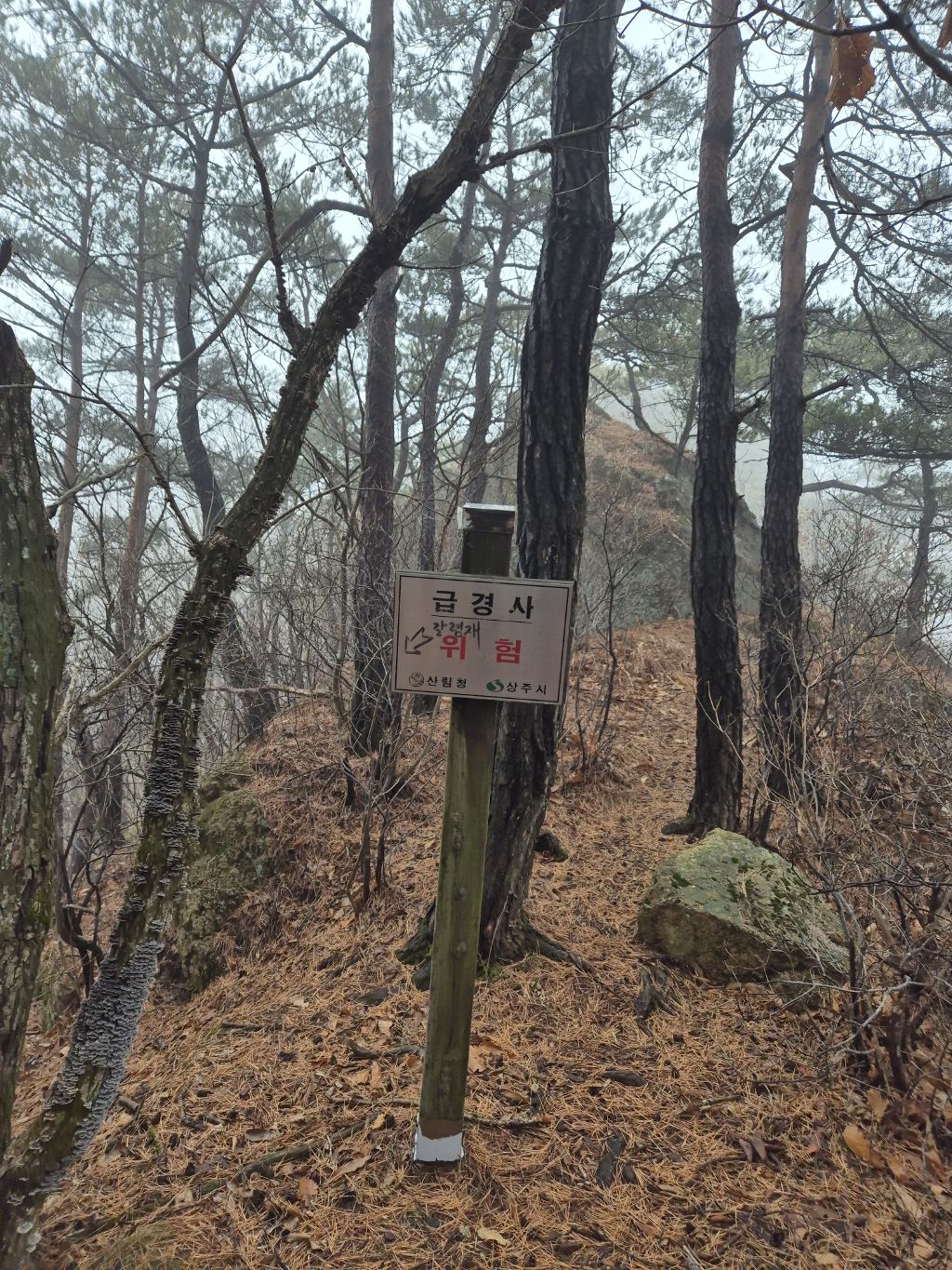 구병산 갈림길 지나 완만한경사로 올라가면 급경사 위험 표지판이 나오면