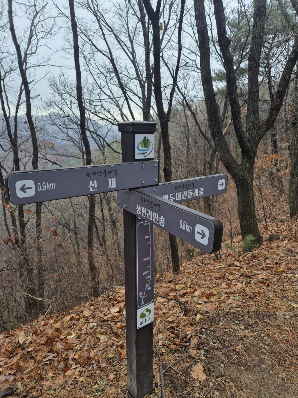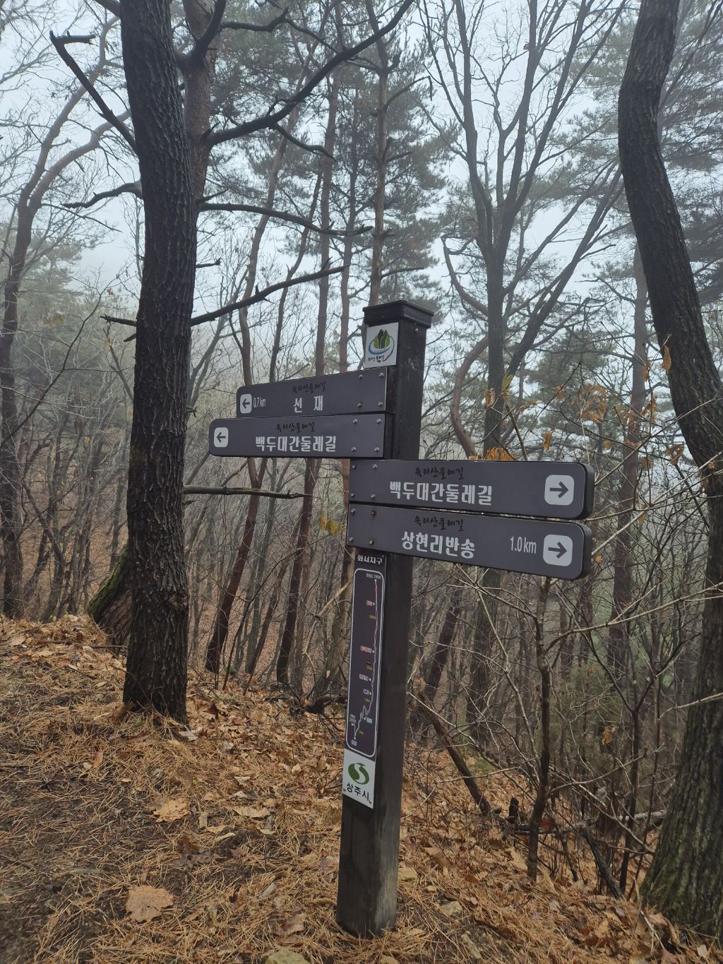 이후 약0.1km가면 선재갈림길 이정목