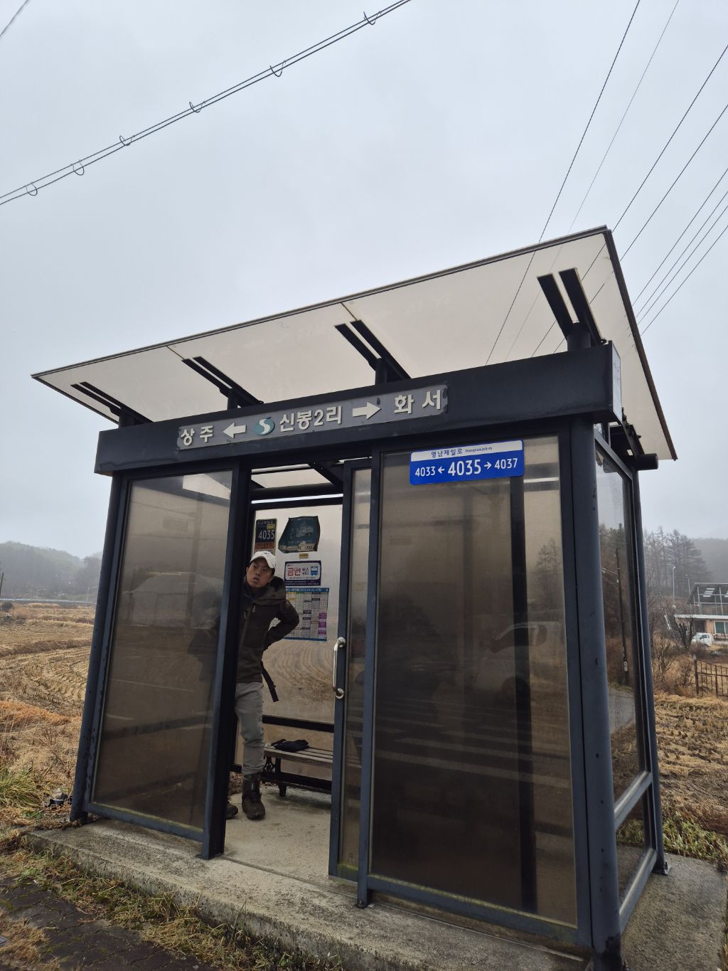 약0.4km 후방 버스 정류장에서 하차