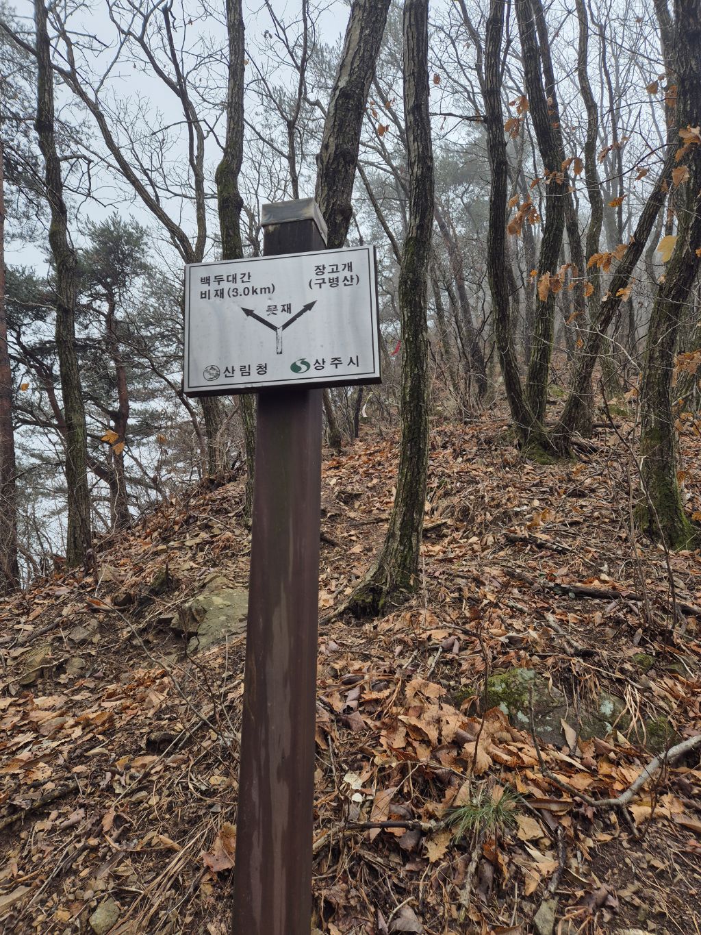(인증)->비재(비조령)->못재->구병산갈림길->갈령삼거리 (인증)->갈령