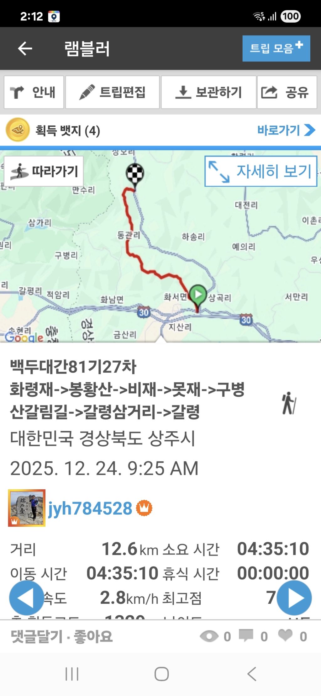 화령재 도착:0km. 09:25