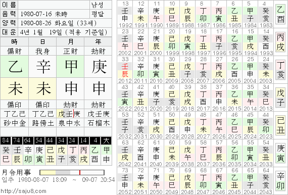 庚申년 甲申월 辛未일.. 궁금하신 분들 있을것 같아 만세력도 뽑아 올려봅니다.