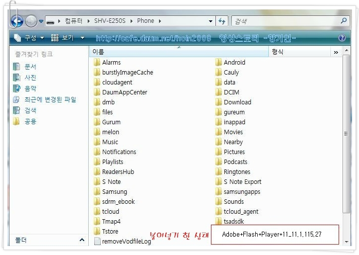 6.폴더 아래 빈공간에 바탕화면에 다운받은 Adobe_Flash_Player_11.1.apk를 복사해서 붙여넣기