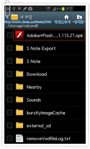 7.스마트폰 앱에서 내파일(또는 다운로드)→ 모든파일에 Adobe_Flash_Player_11.1.apk를 설치
