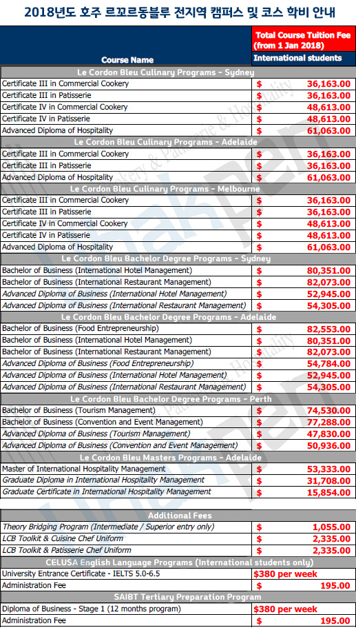 Le Cordon Bleu Culinary Programs - Sydney/Melbourne 르꼬르동블루 요리예술학과 프로그램 - 시드니/ 멜번 | |||||