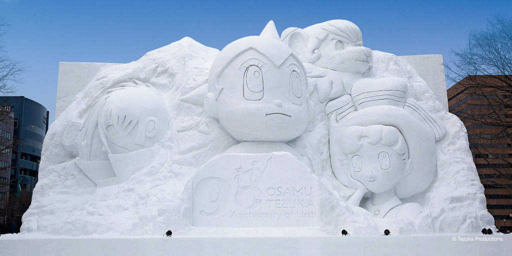 오도리공원 1초메~12초메 사이에는 약1.5km에 걸쳐 눈과 얼음으로 만든 조각상이전시 되어있습니다.