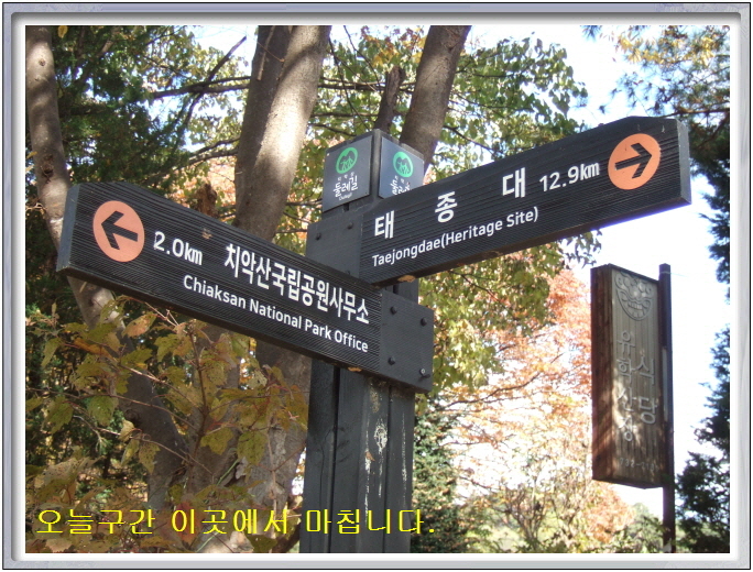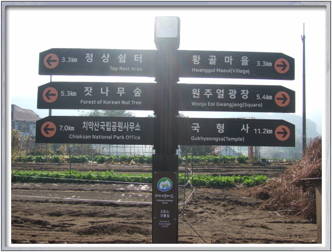 워킹코스 : 원주시 소초면 흥양리(상초구)→고개쉼터→구룡야영장→백교버스정류장