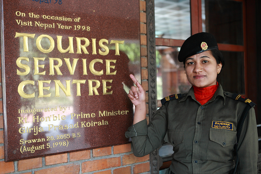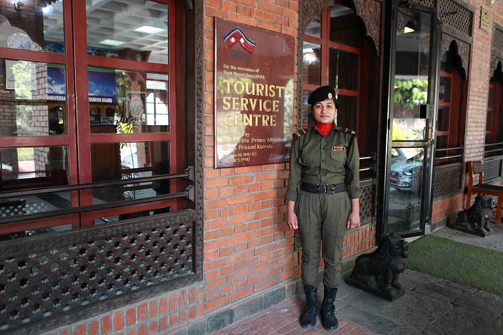네팔 관광청에서 여경비원과 함께,