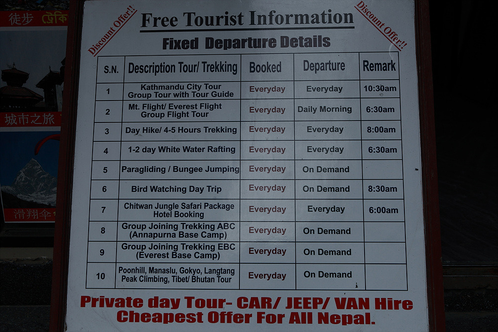 또 다른 여행사 입구에 세워져 있는 안내판....