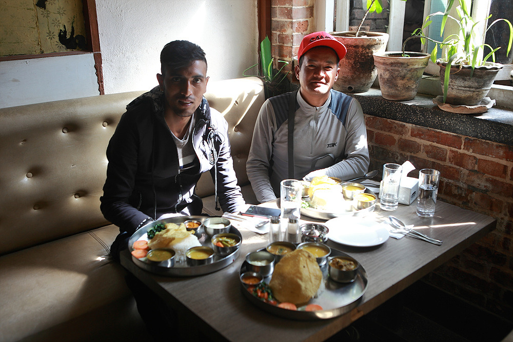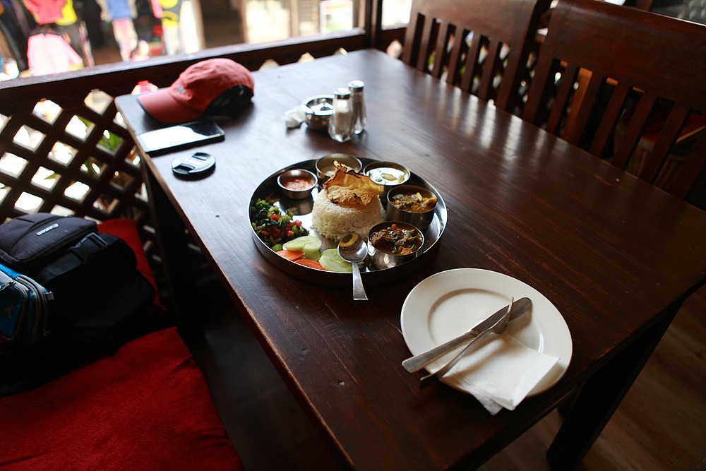 네팔 달밧을 시켜놓고, 맛있게 먹는다.