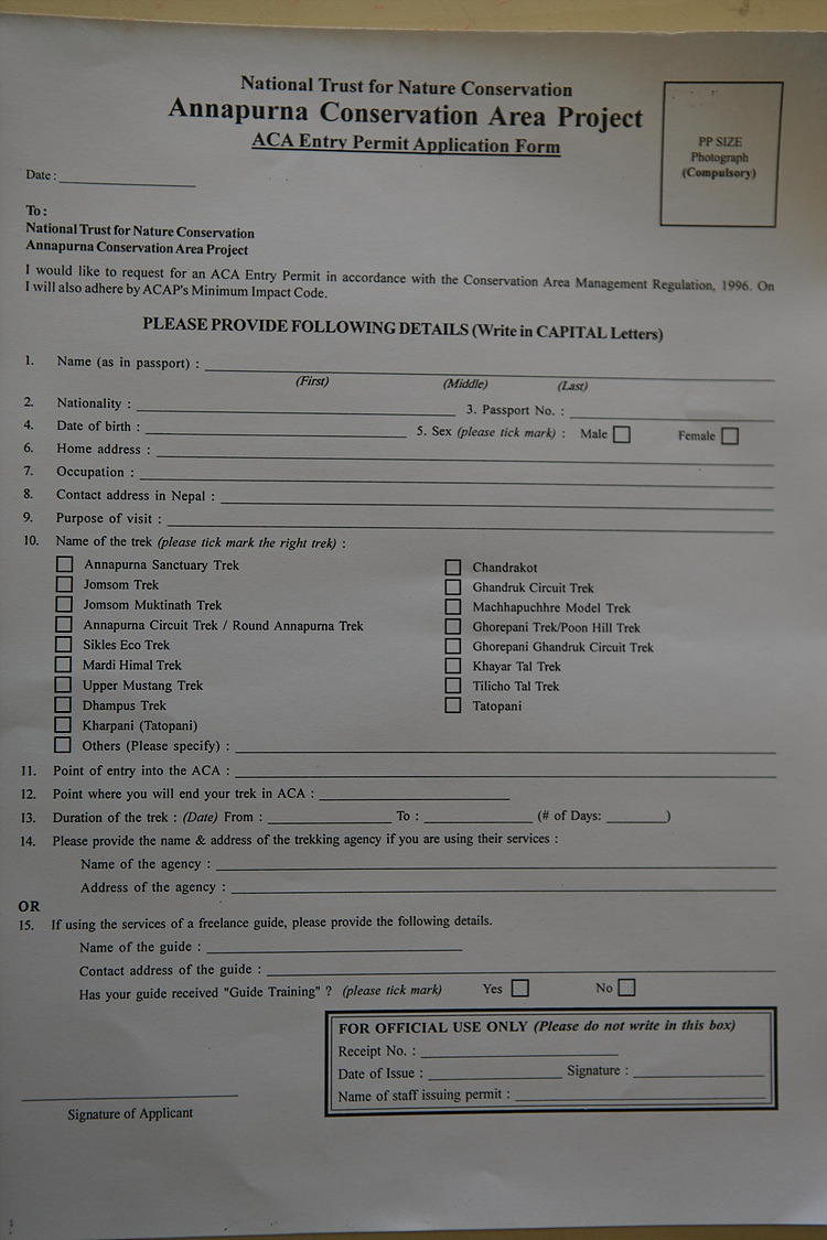 안나푸르나 지역 입산허가서 양식....