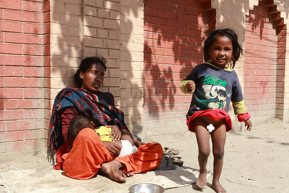 젖도 안뗀 어린아이를 안고 동냥하는 여인,