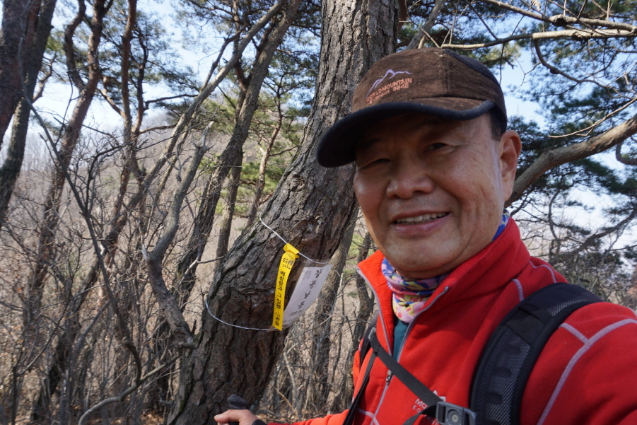 (14;46) 해공산(417m) 정상 함께한 윤태국 5년 선배님입니다. 86세 연세에도 청년처럼 날으시는 분입니다. 모처럼 오르내림이 심한 빨래판 능선 힘든 코스 둘이서만 함께 산행할 수 있어 좋았습니다. 오래오래 100세까지도 산행 이어가시길 기원합니다. 선배님 인증사진 챙기다가 제 인증사진 이 없군요.ㅎ